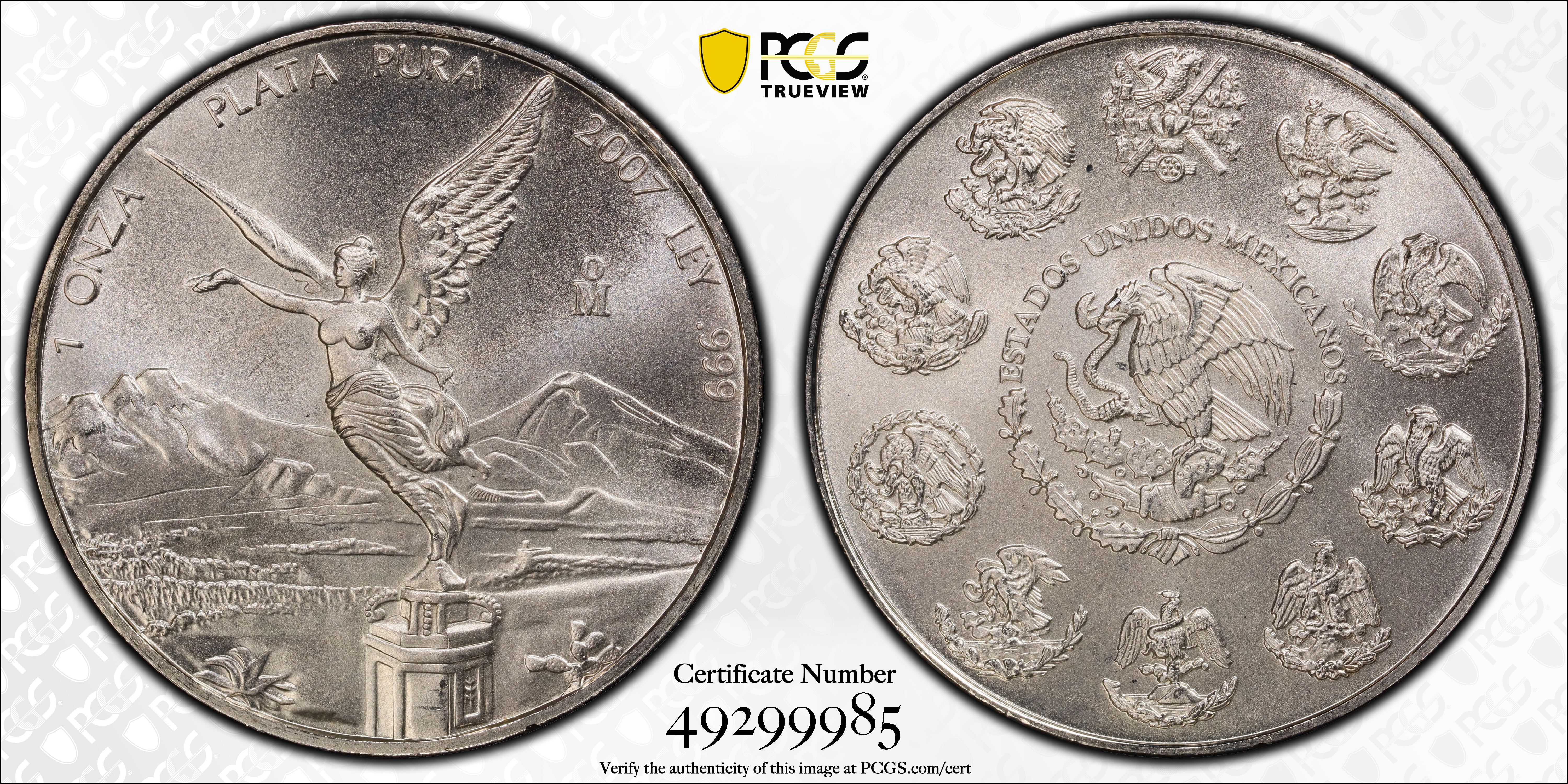2007-Mo Onza Libertad Ag MS68 认证号49299985, PCGS号396536