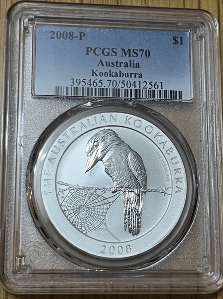 2008-P $1 Kookaburra Ag MS70 认证号50412561, PCGS号395465