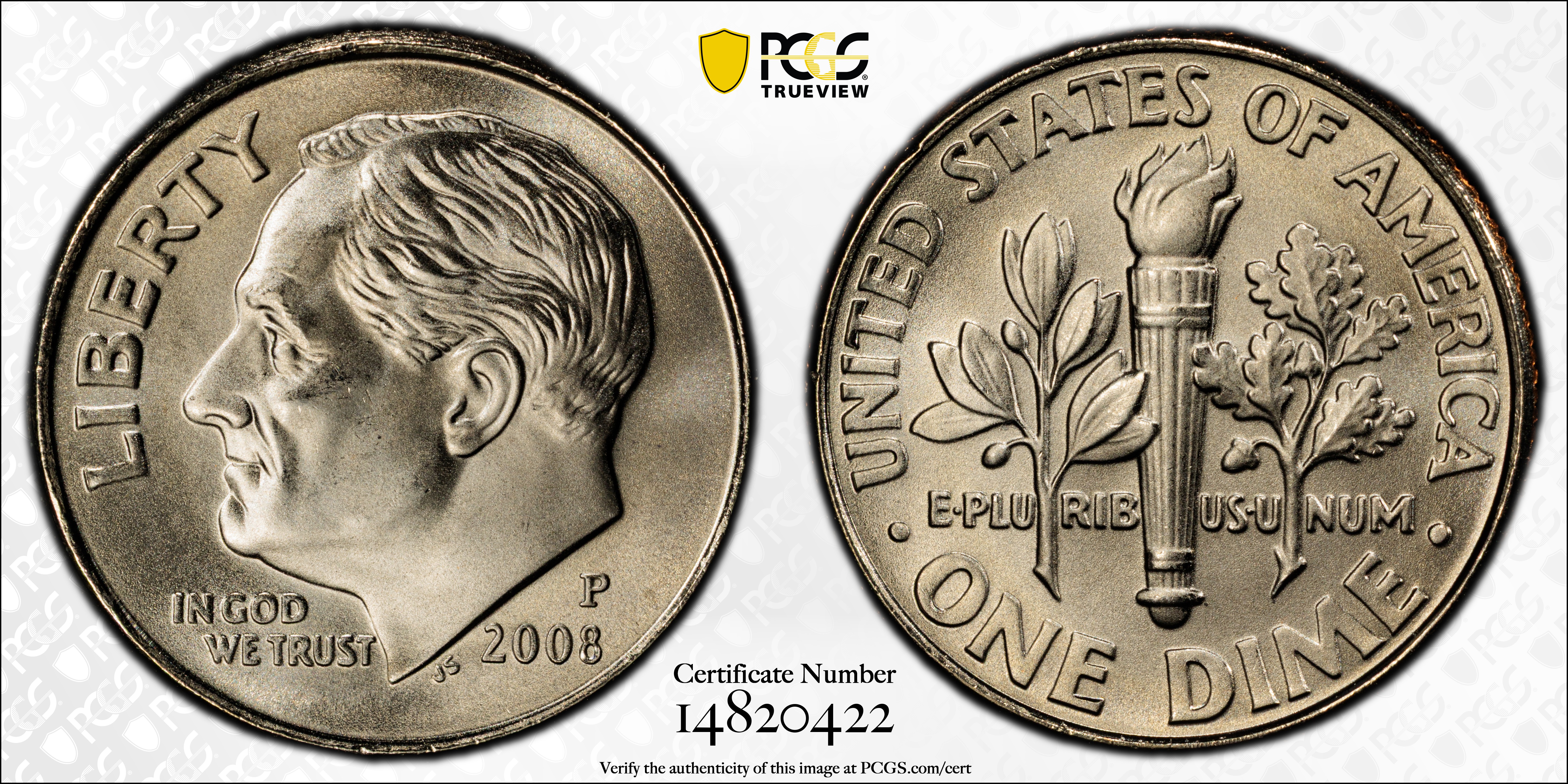 2008-P 10C Satin Finish, FB SP68FB 认证号14820422, PCGS号394928
