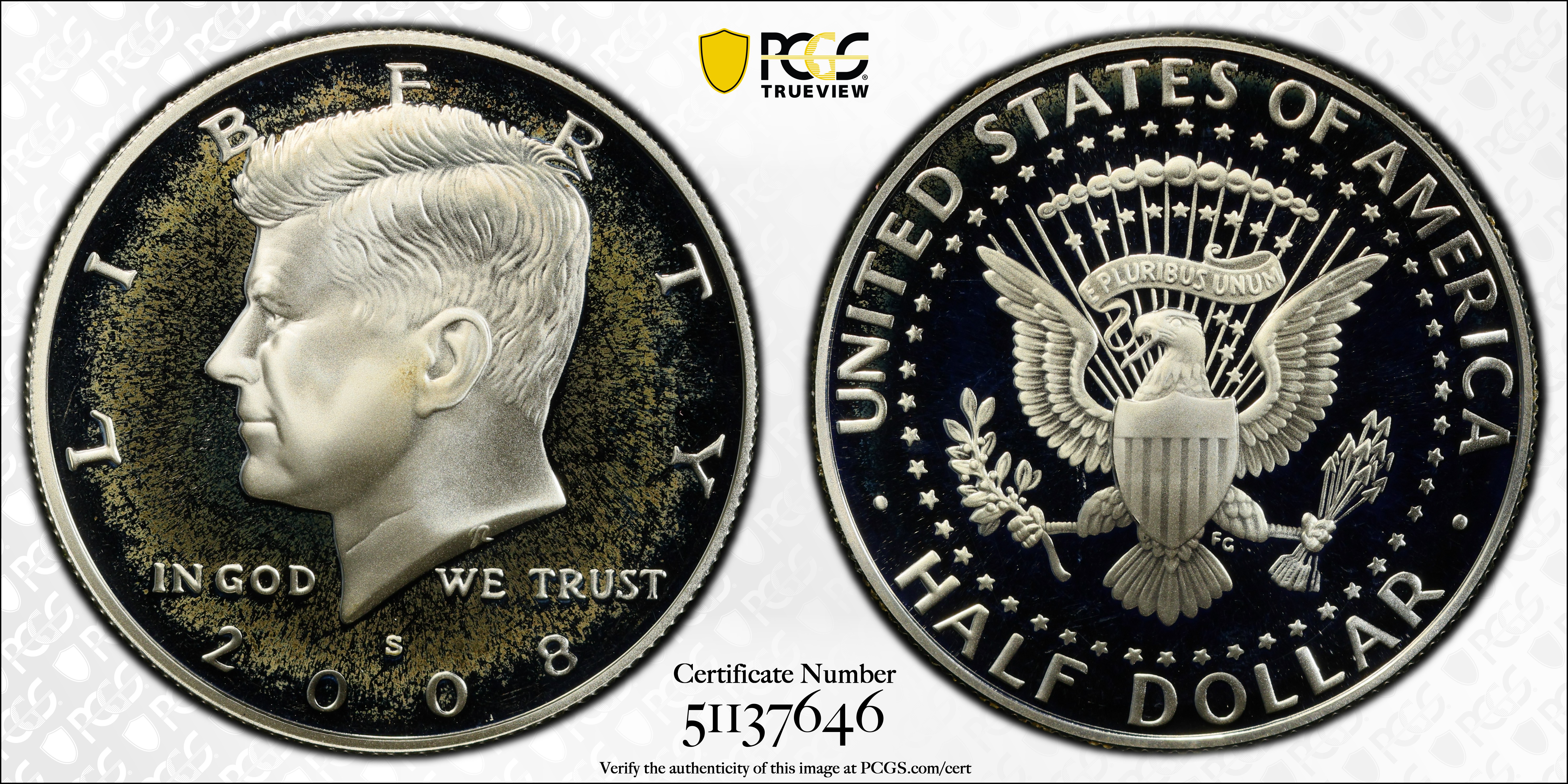 2008-S 50C Silver, DCAM PR68DCAM 认证号51137646, PCGS号394955