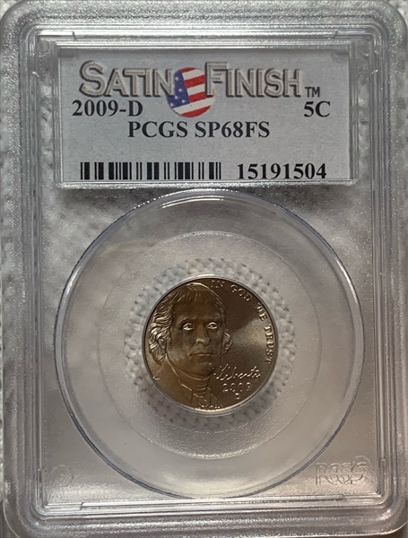 2009-D 5C Satin Finish, FS SP68FS 认证号15191504, PCGS号407259