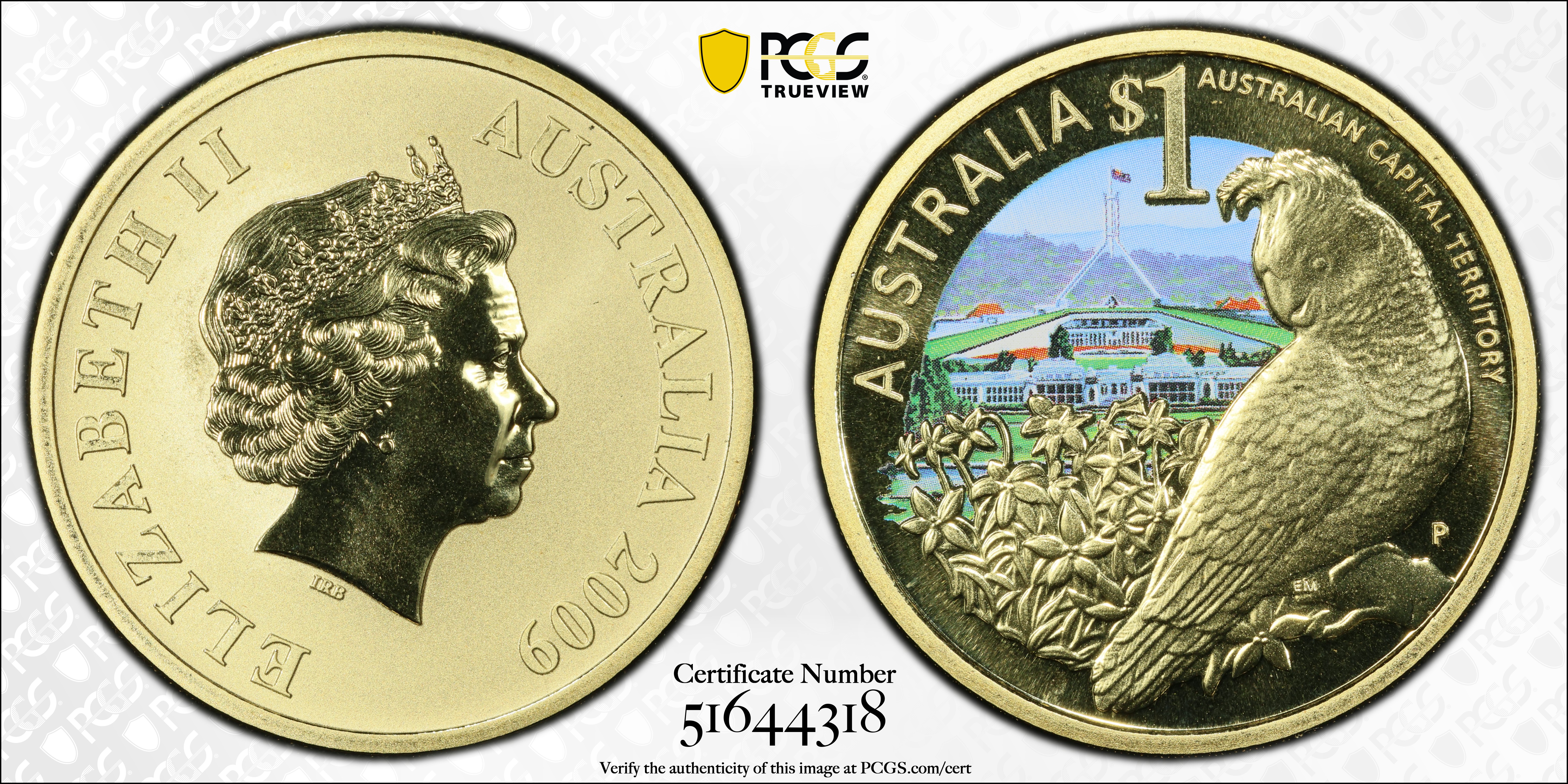 2009-P $1 Australian Capital Territory Cockatoo Colorized MS69 认证号51644318, PCGS号675529