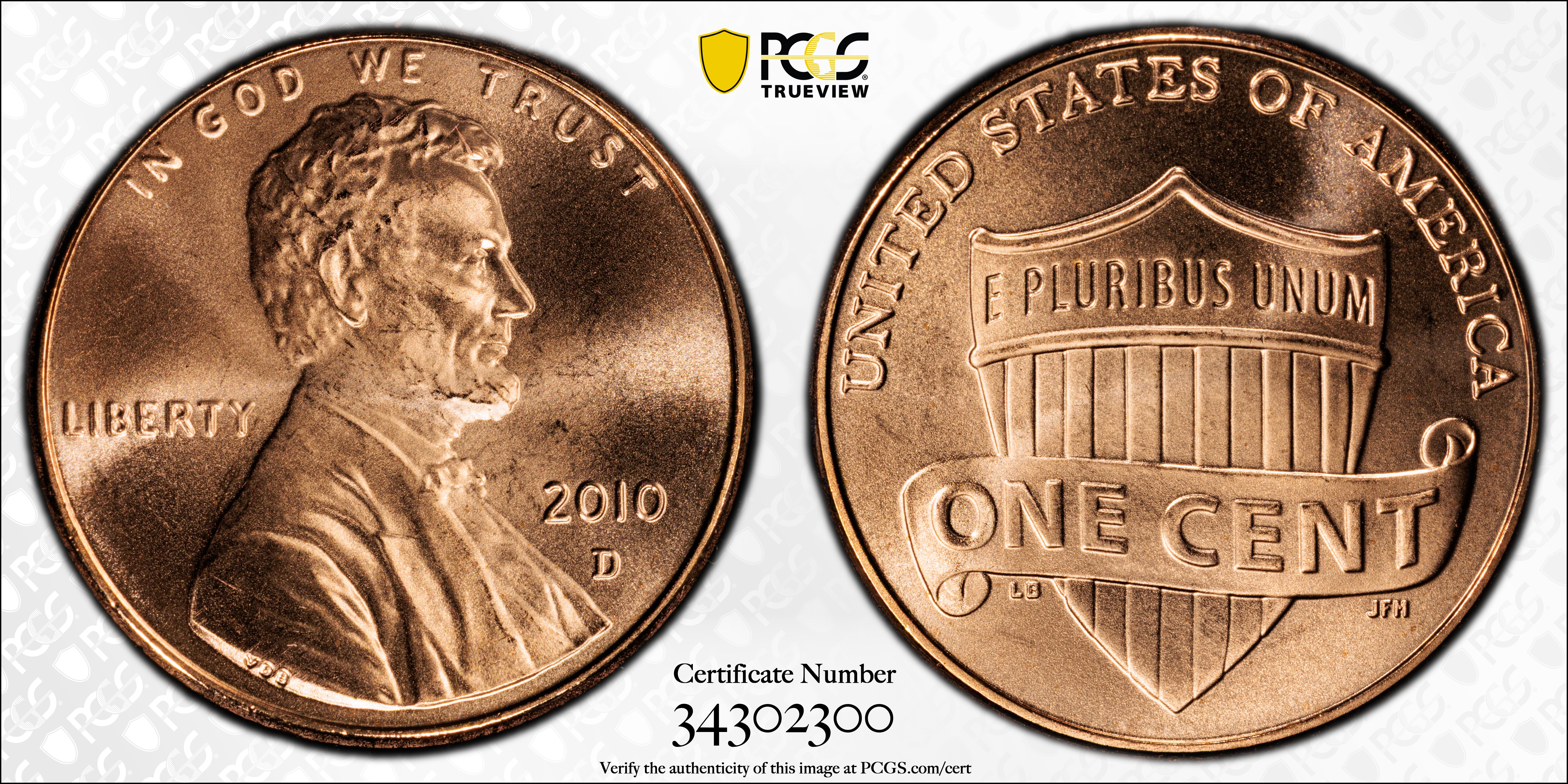 2010-D 1C Shield Satin Finish, RD SP68RD 认证号34302300, PCGS号416677