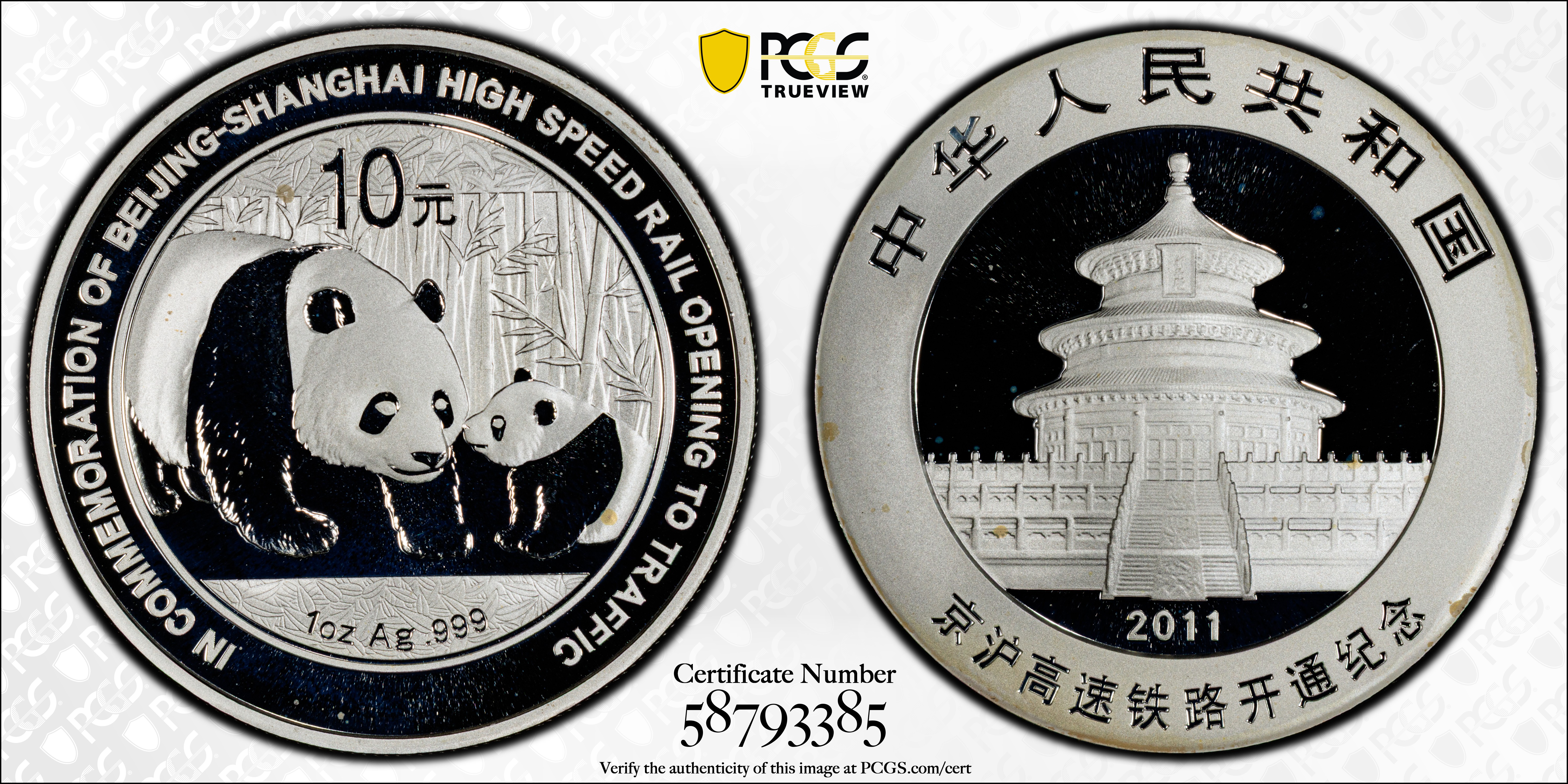 2011 10 Yn Beijing-Shanghai Rail PAN-546A MS69 认证号58793385, PCGS号509283
