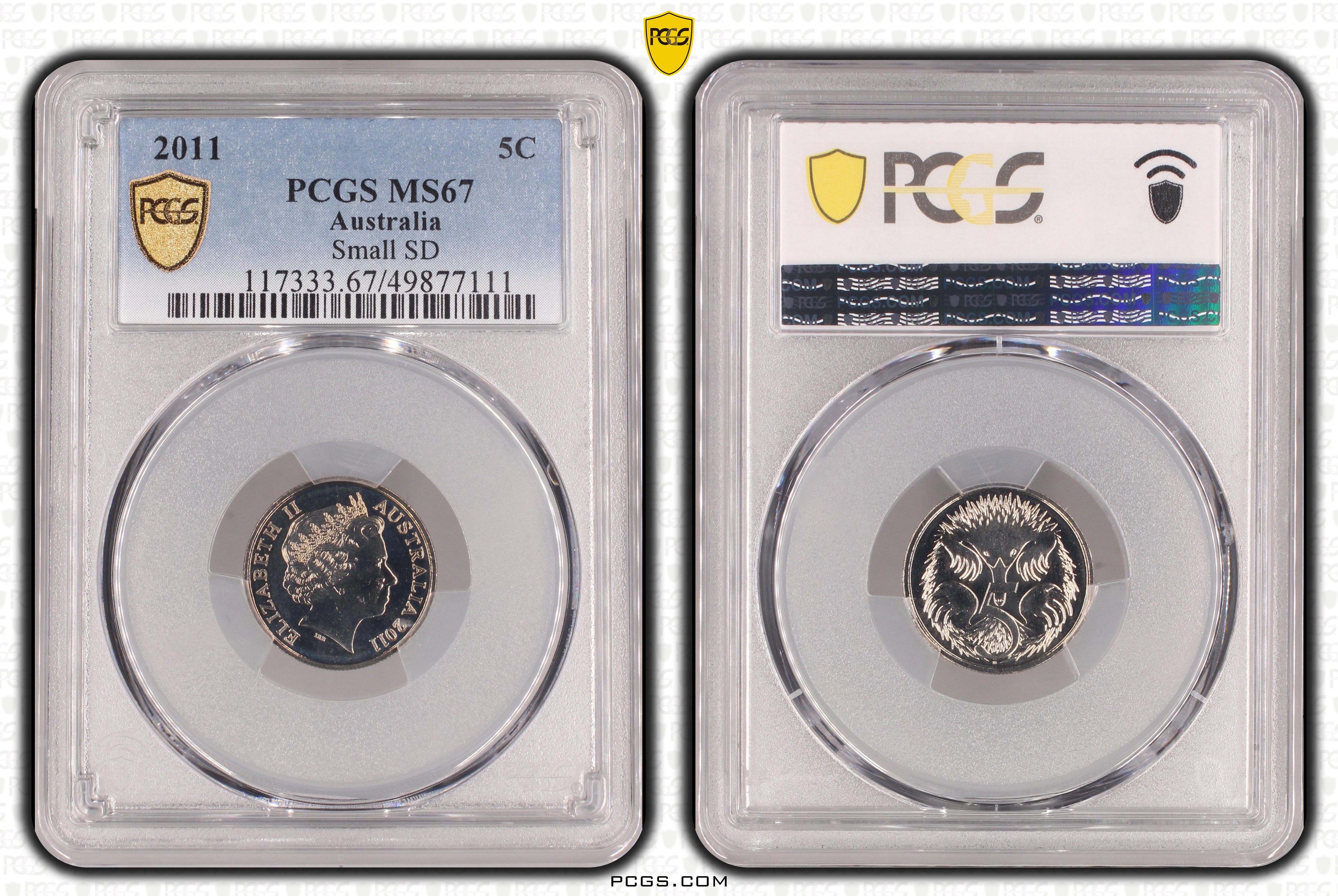 2011 5C Small SD MS67 认证号49877111, PCGS号117333