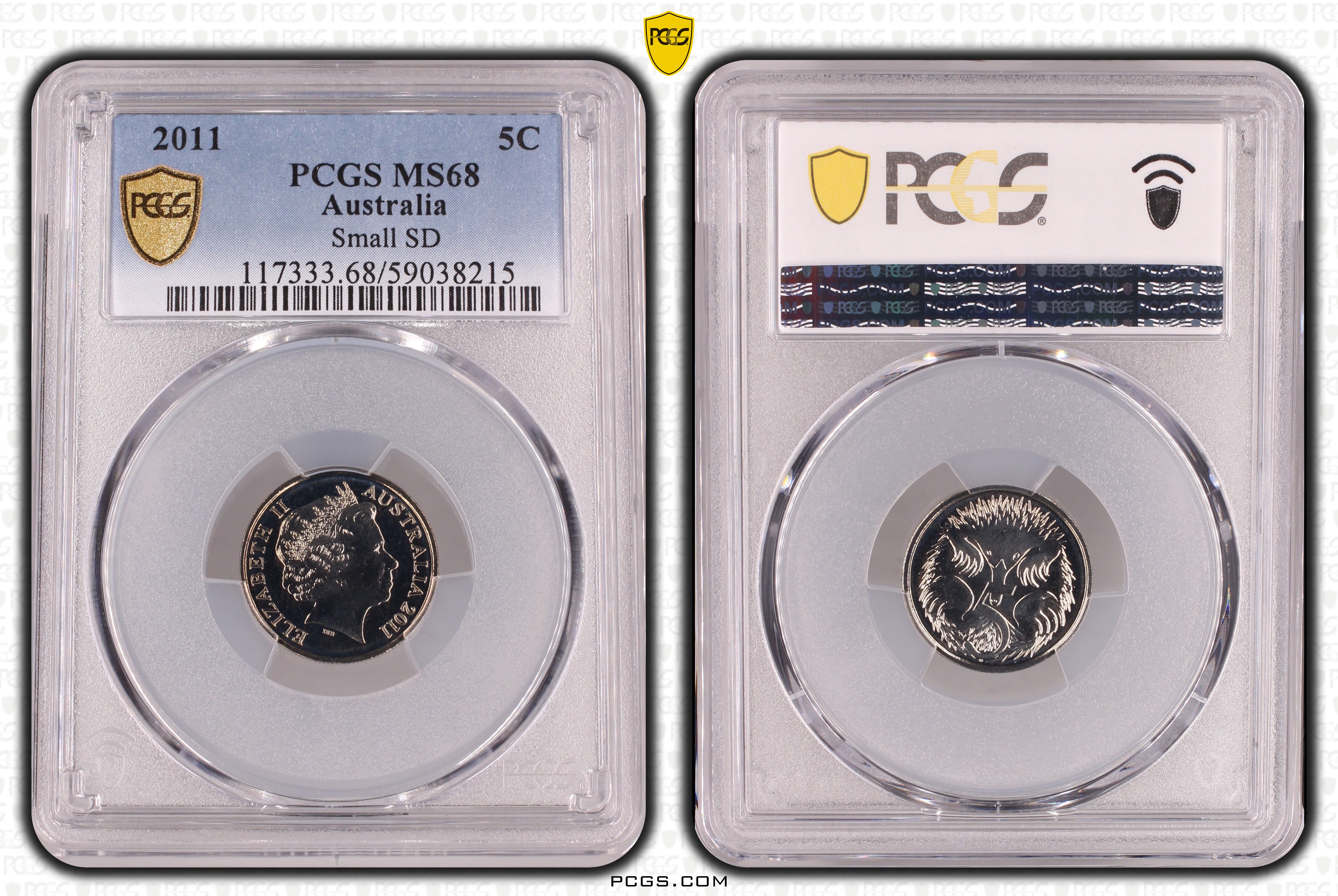 2011 5C Small SD MS68 认证号59038215, PCGS号117333