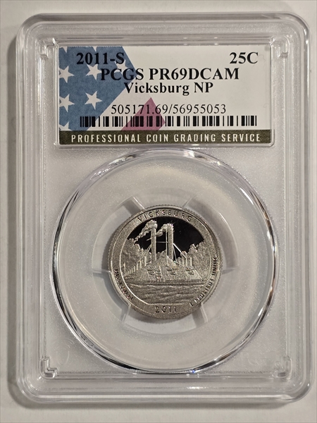 2011-S 25C Vicksburg NP, DCAM PR69DCAM 认证号56955053, PCGS号505171