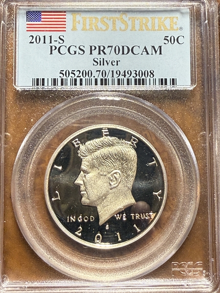 2011-S 50C Silver First Strike, DCAM PR70DCAM 认证号19493008, PCGS号505200