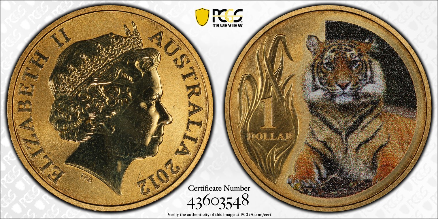 2012 $1 Tiger Al-Bronze Colorized MS68 认证号43603548, PCGS号516237