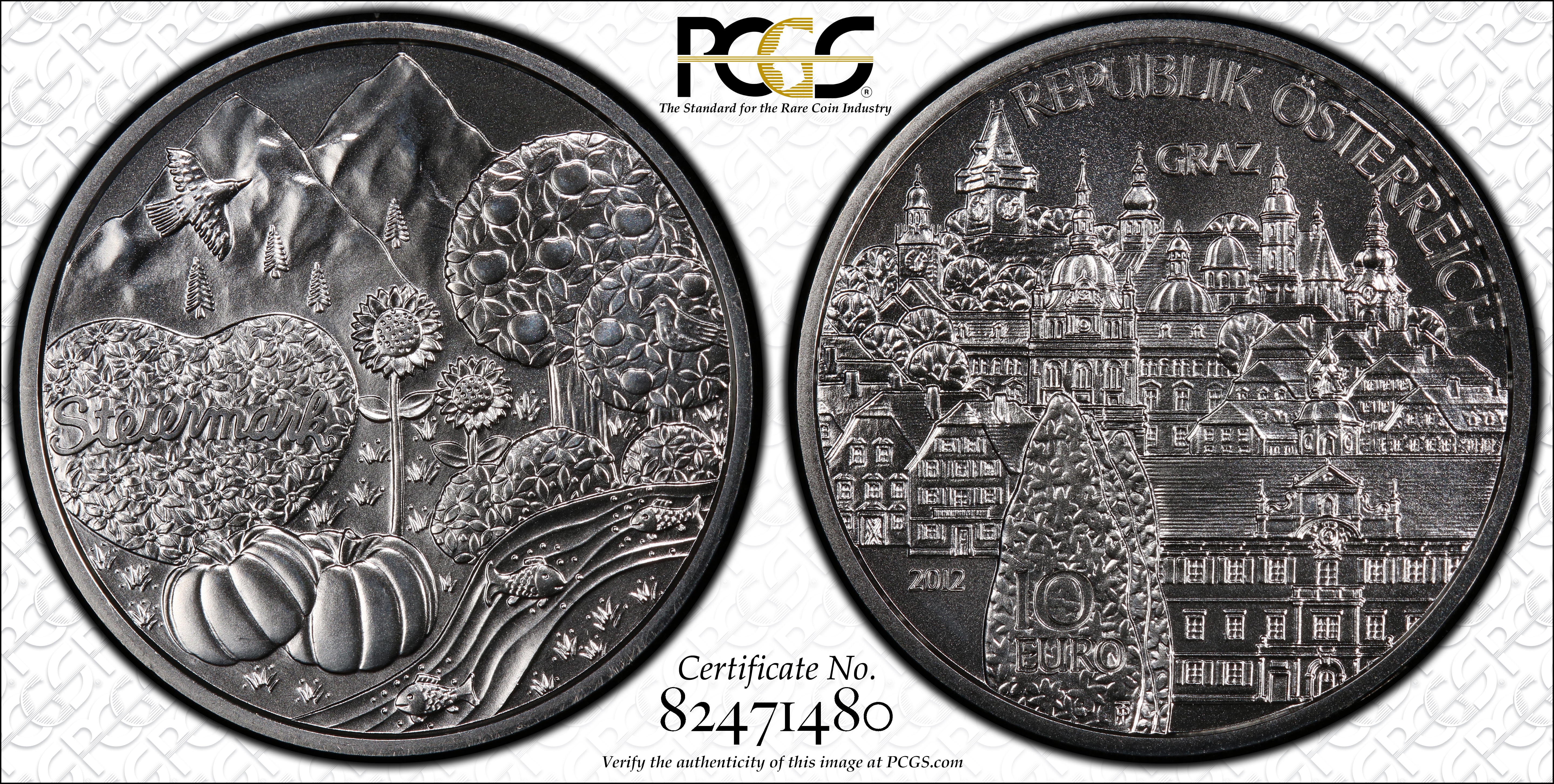 2012 € 10 Styria MS69 认证号82471480, PCGS号617771