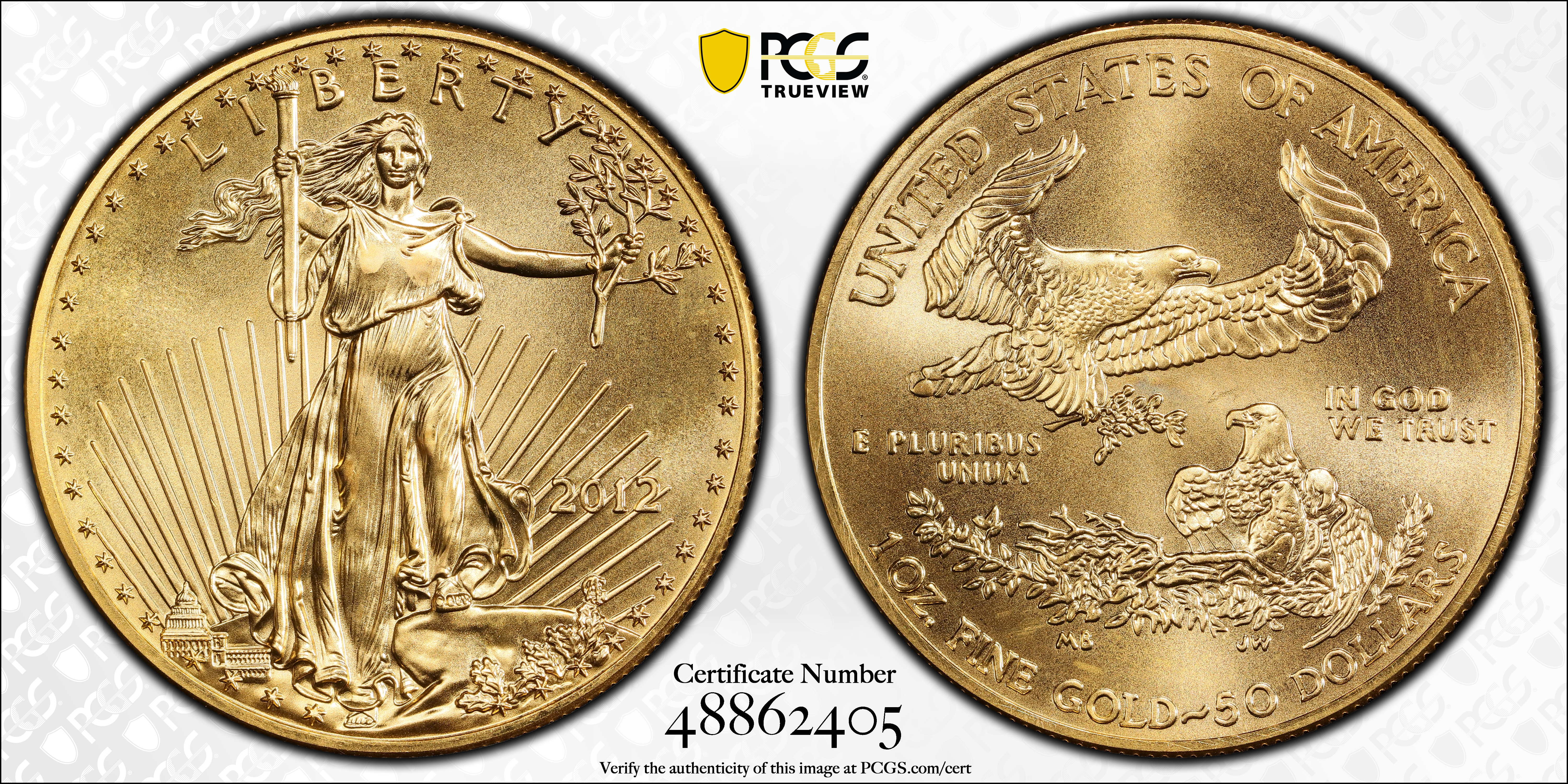 2012 $50 Gold Eagle MS68 认证号48862405, PCGS号509773