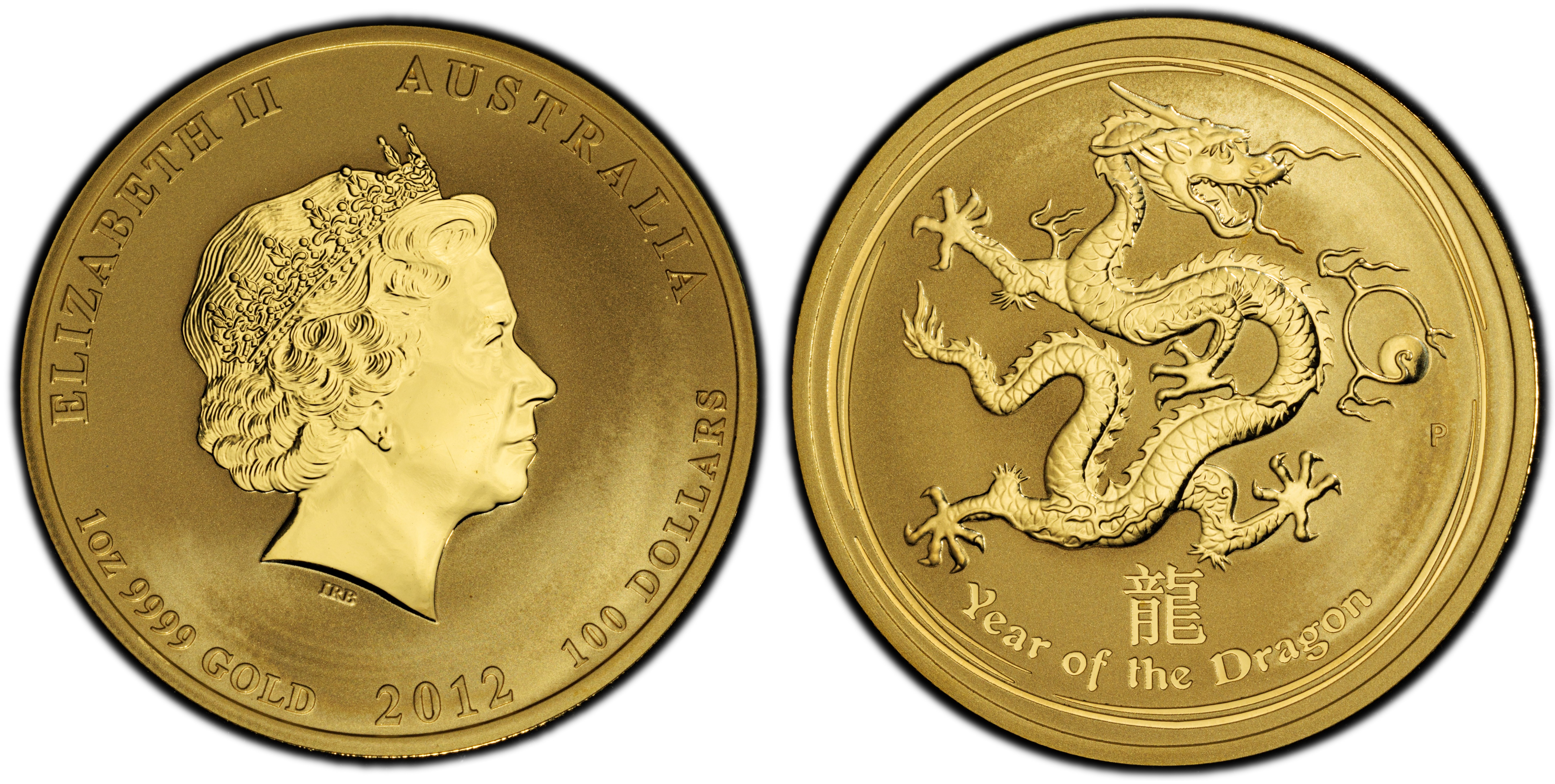 2012-P $100 Year of the Dragon Au MS70 认证号53999109, PCGS号509896