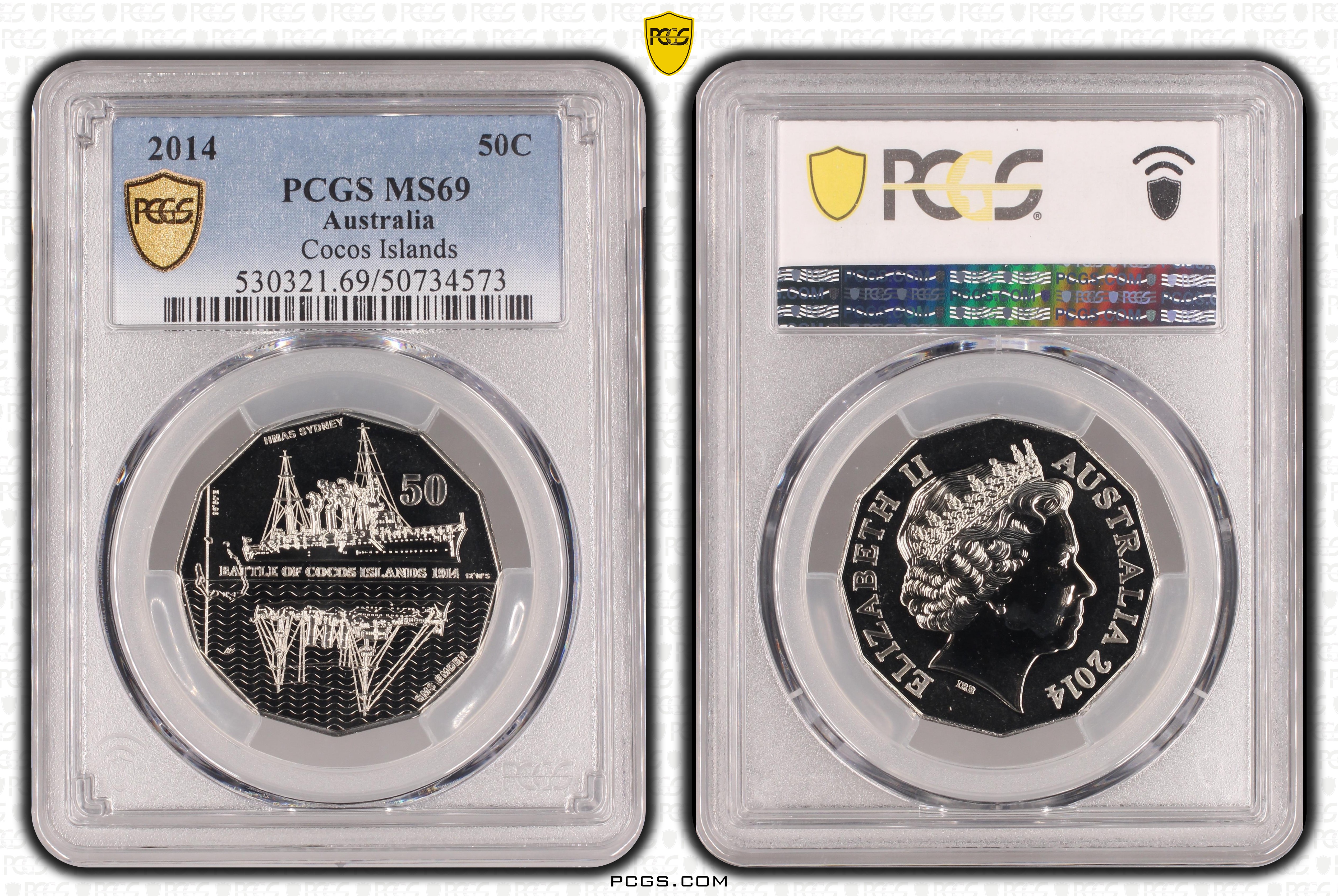 2014 50C Cocos Islands MS69 认证号50734573, PCGS号530321