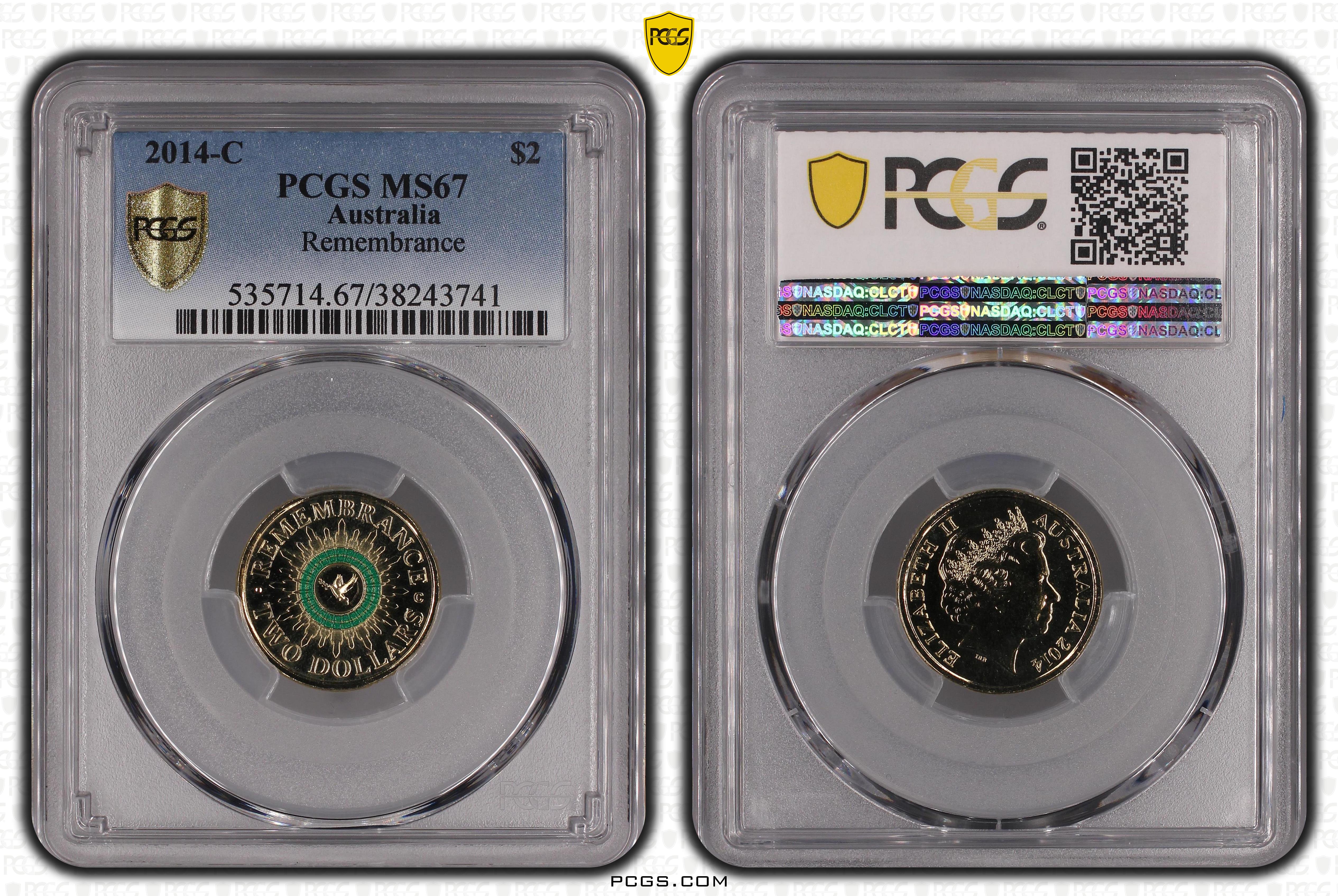 2014-C $2 Remembrance Colorized MS67 认证号38243741, PCGS号535714