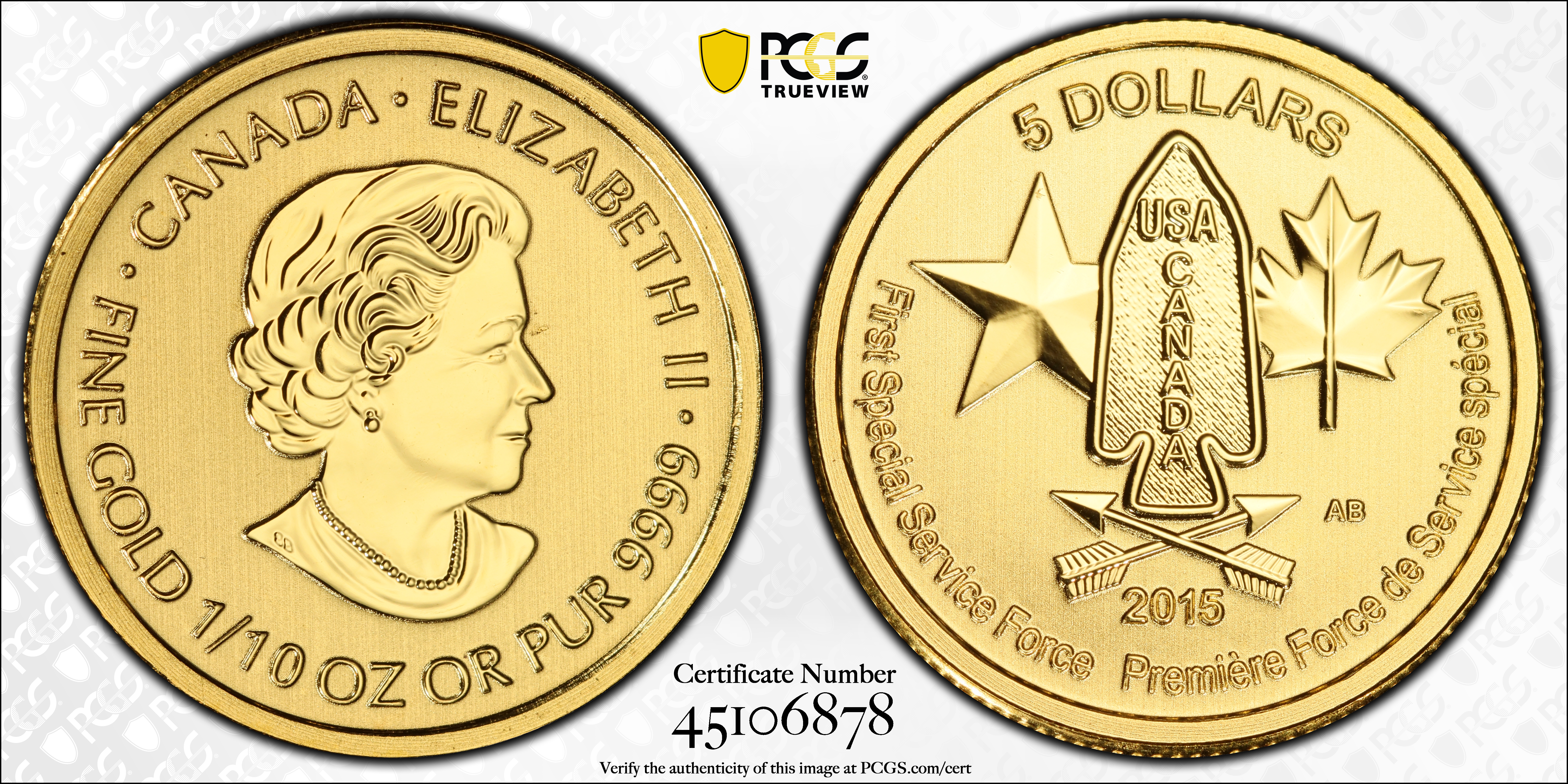 2015 $5 Devil's Brigade MS69 认证号45106878, PCGS号828354