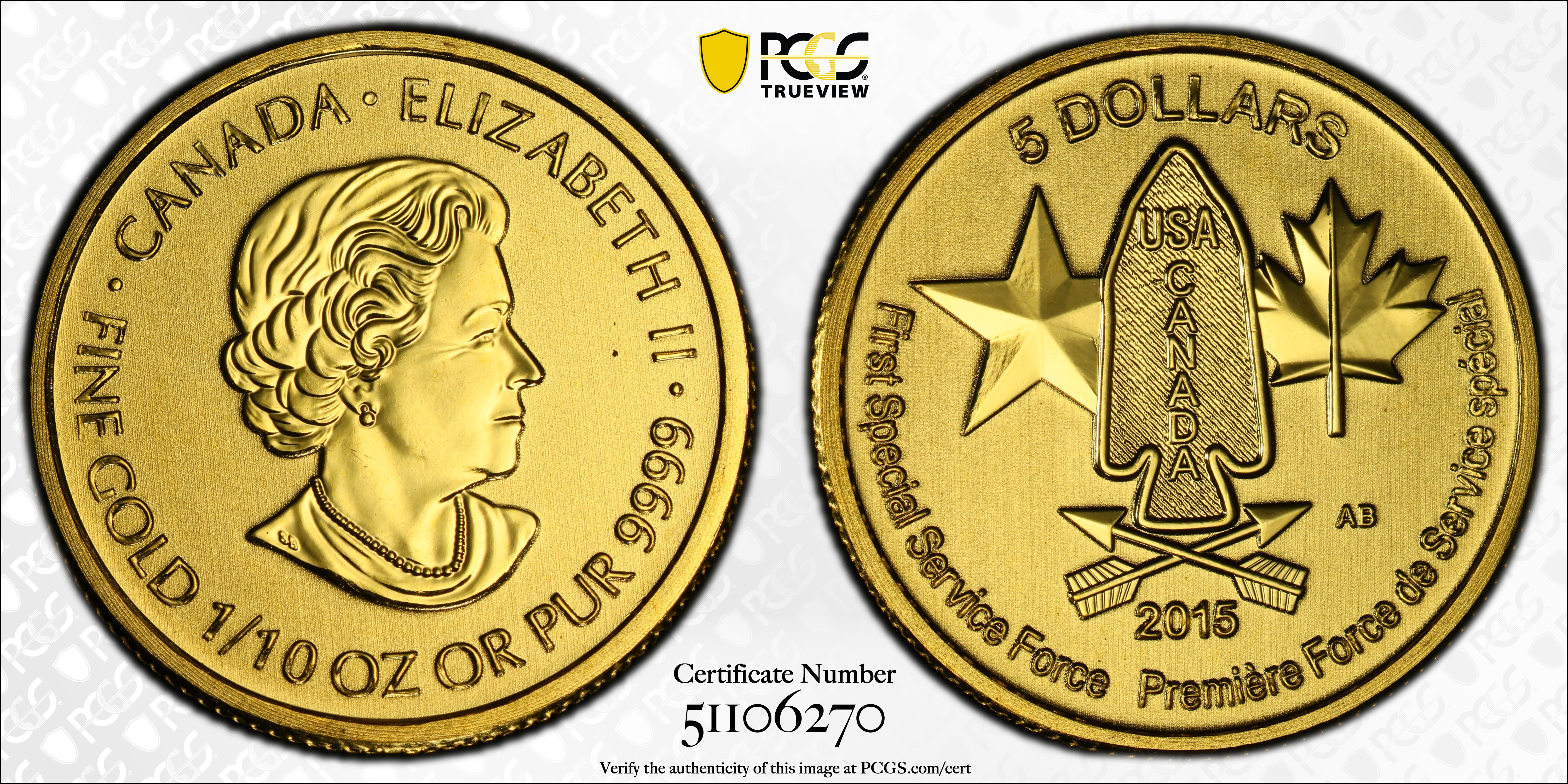 2015 $5 Devil's Brigade MS69 认证号51106270, PCGS号828354