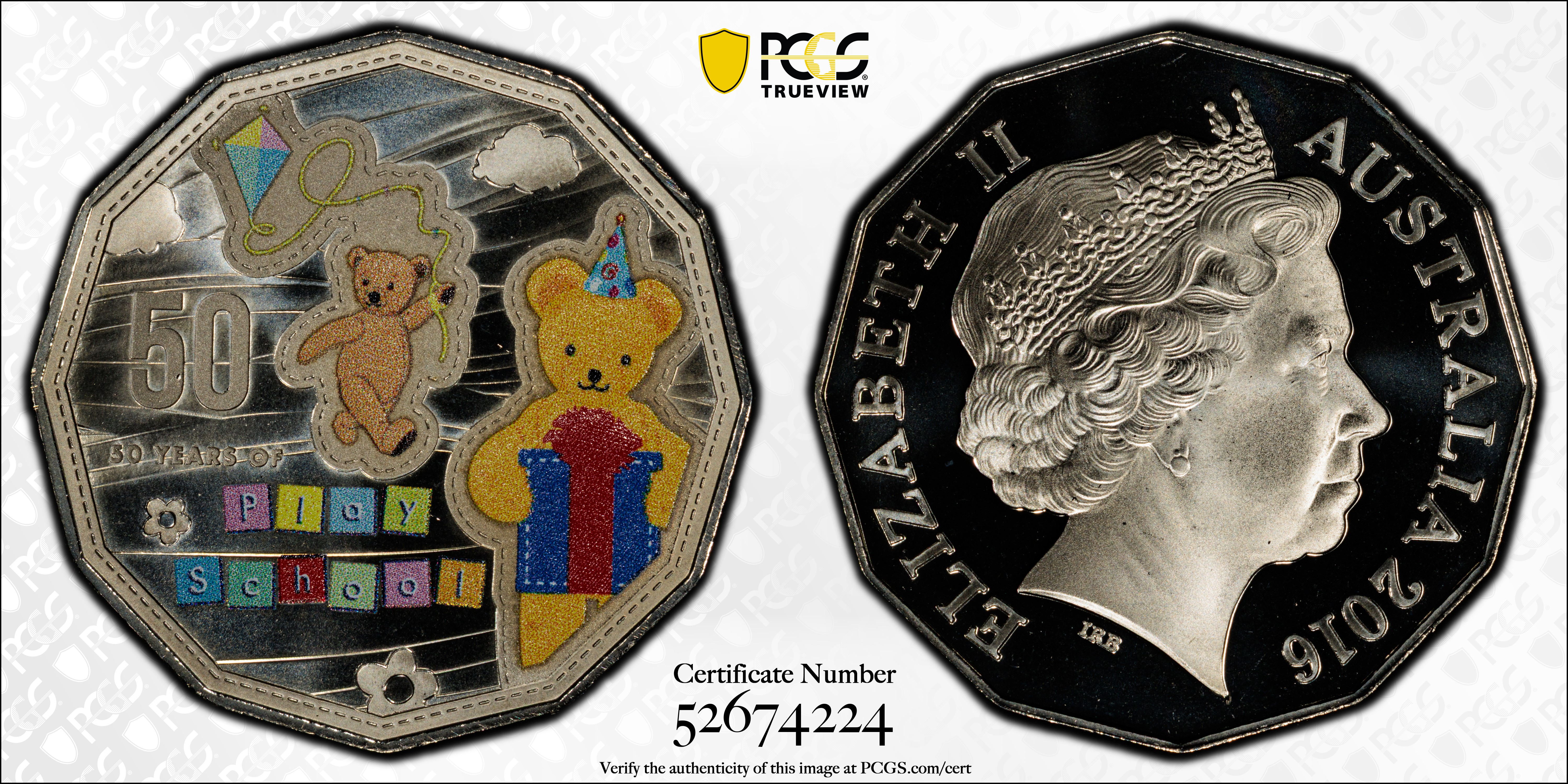 2016 50C Big Ted Play School Colorized MS69 认证号52674224, PCGS号608439