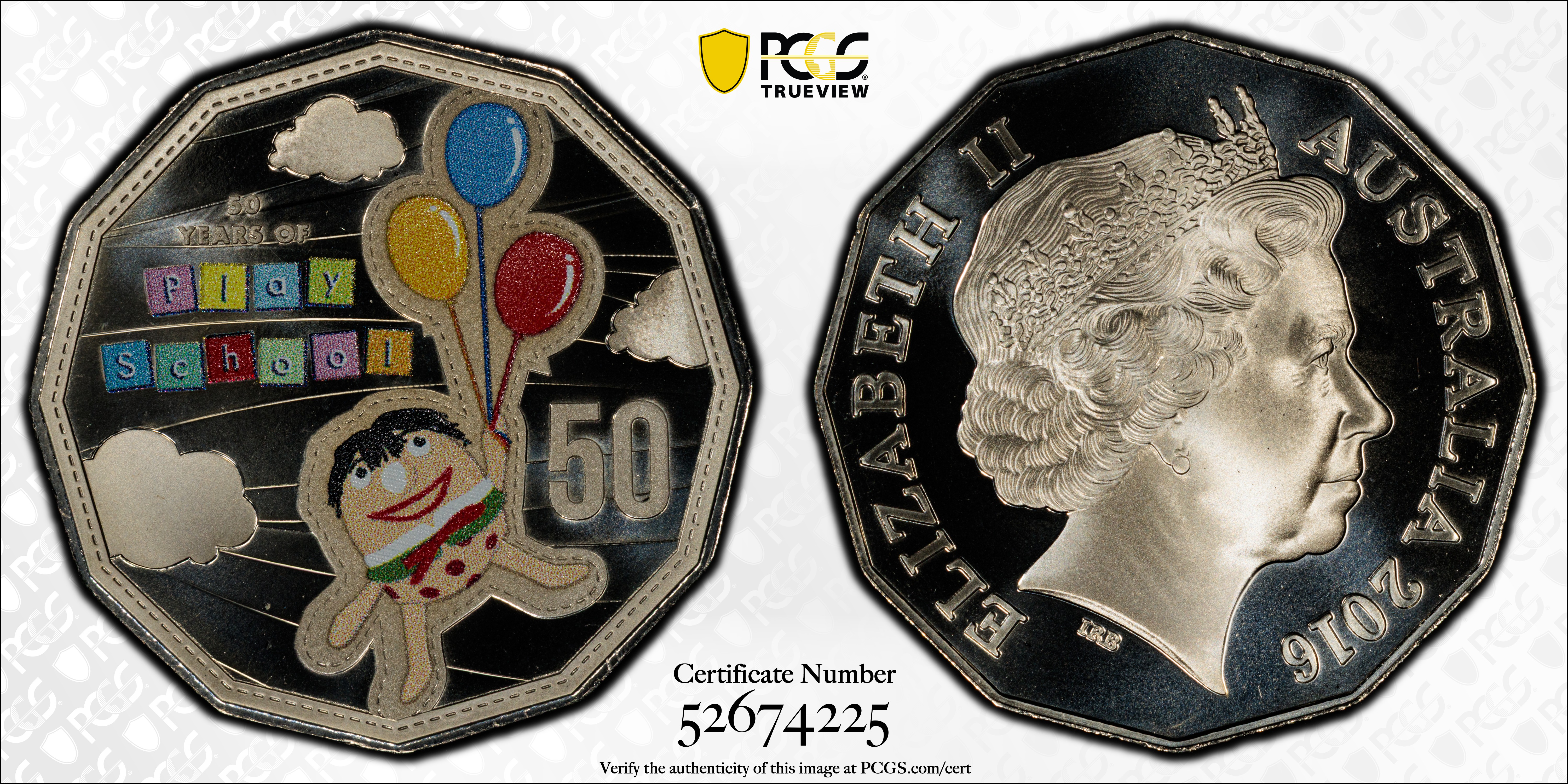 2016 50C Humpty Play School Colorized MS69 认证号52674225, PCGS号608438