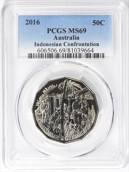 2016 50C Indonesian Confrontation MS69 认证号81039664, PCGS号606506