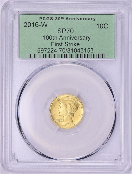 2016-W 10C 100th Anniversary First Strike SP70 认证号81043153, PCGS号597224