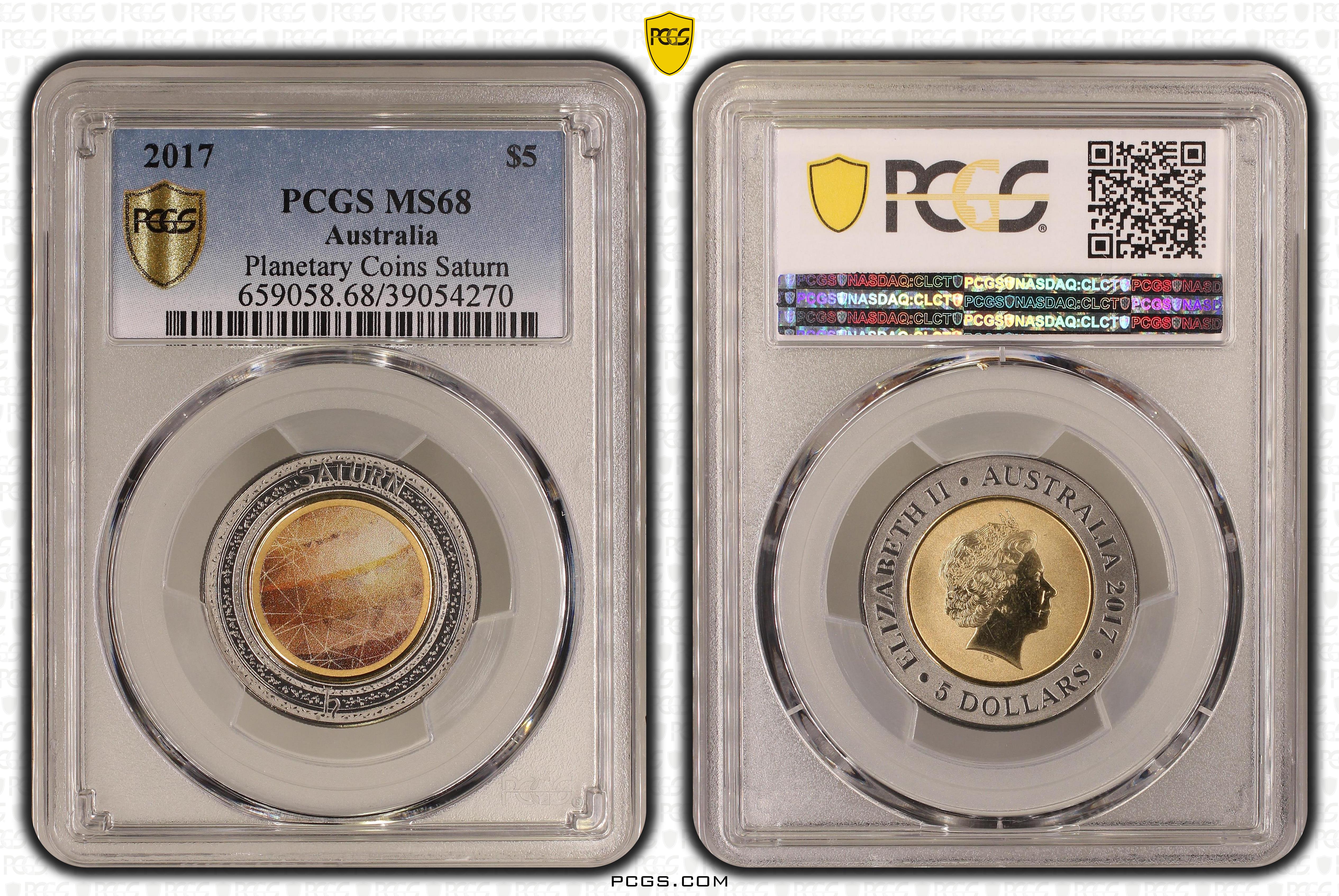 2017 $5 Planetary Coins Saturn Colorized MS68 认证号39054270, PCGS号659058