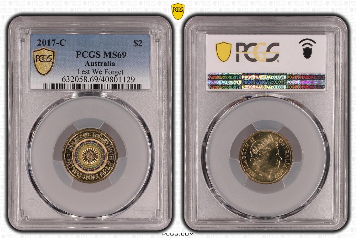2017-C $2 Lest We Forget Colorized MS69 认证号40801129, PCGS号632058