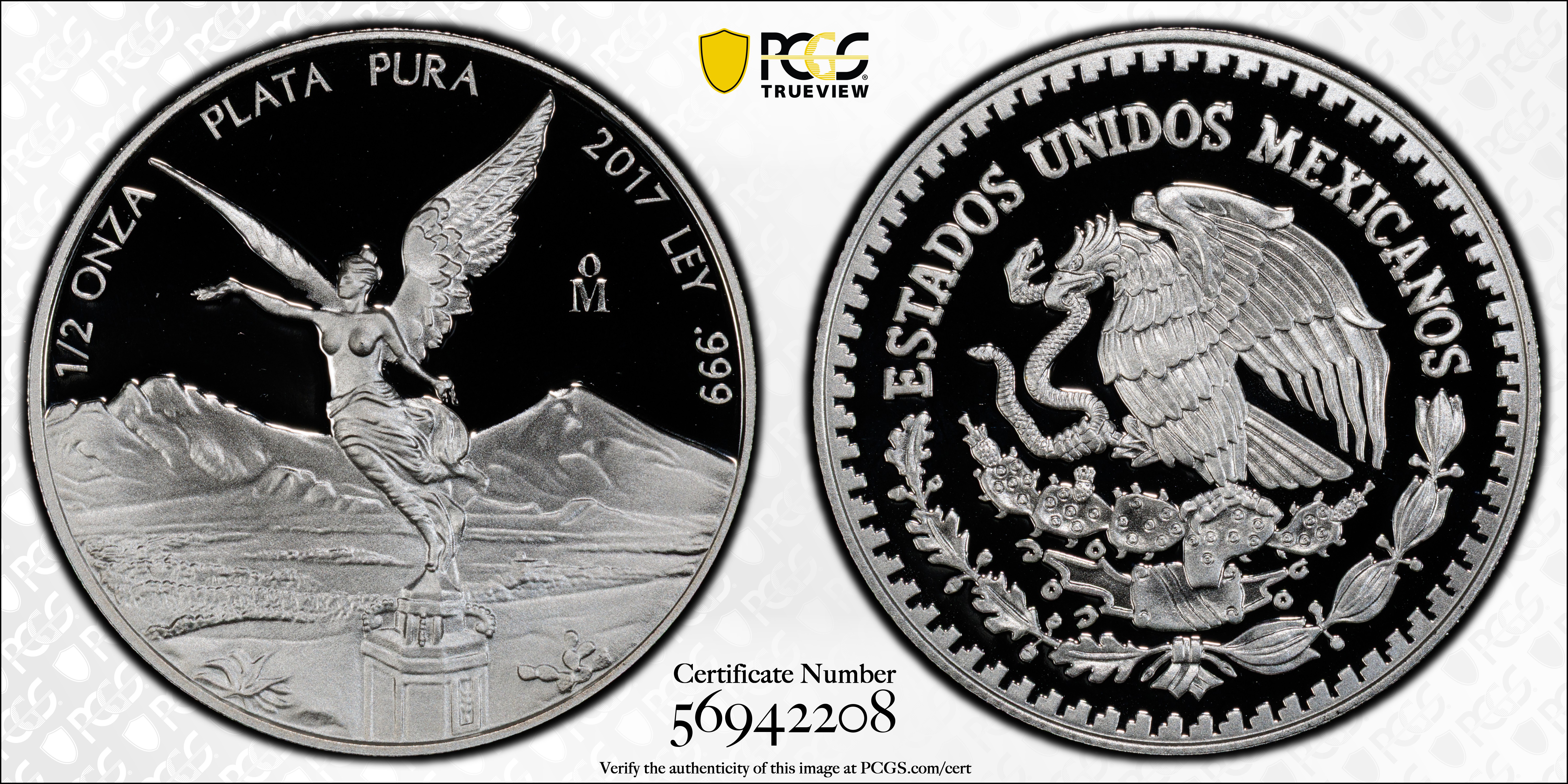 2017-Mo 1/2 oz Libertad Ag, DCAM PR69DCAM 认证号56942208, PCGS号810265