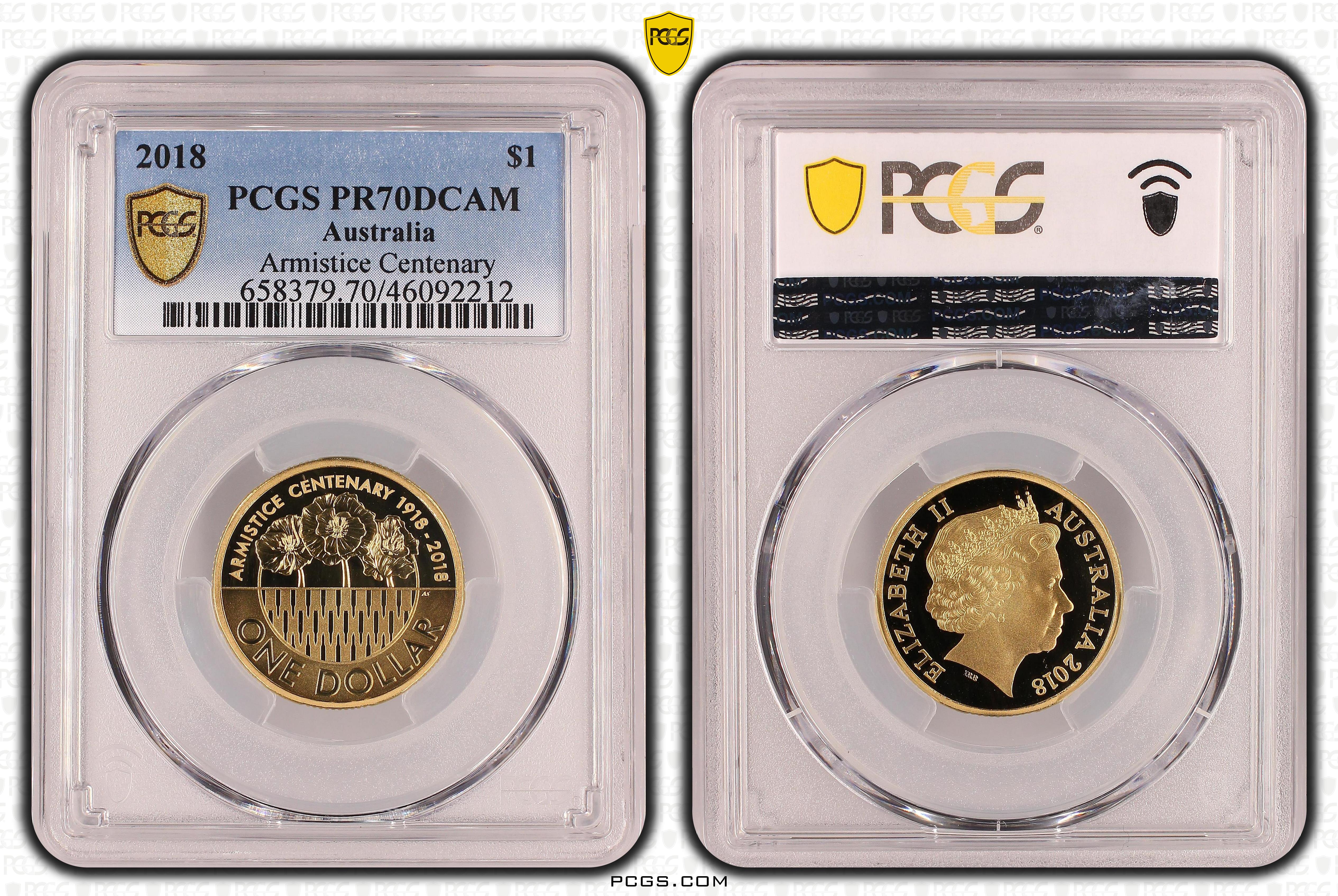 2018 $1 Armistice Centenary, DCAM PR70DCAM 认证号46092212, PCGS号658379