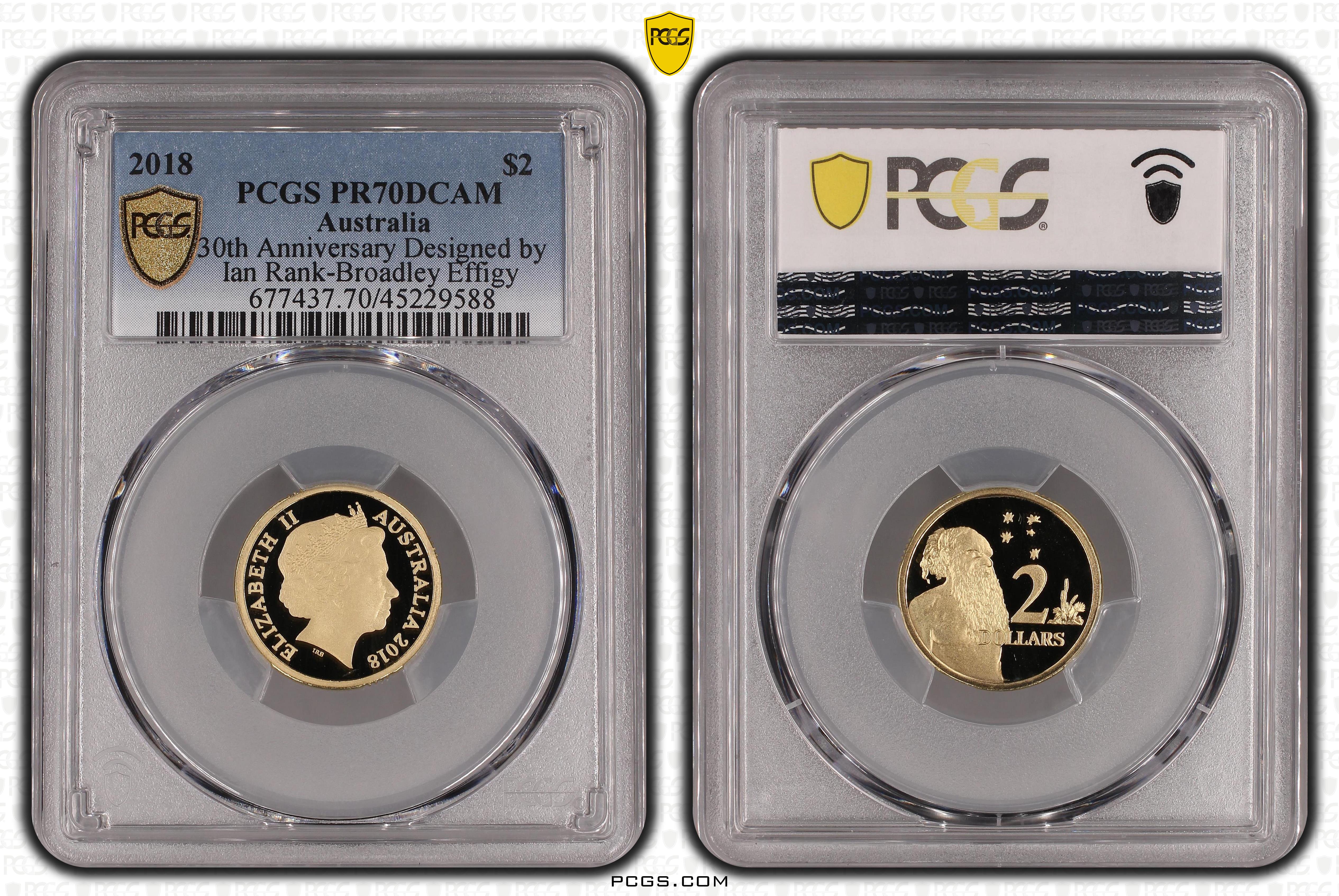 2018 $2 30th Anniversary Designed by Ian Rank-Broadley Effigy, DCAM PR70DCAM 认证号45229588, PCGS号677437