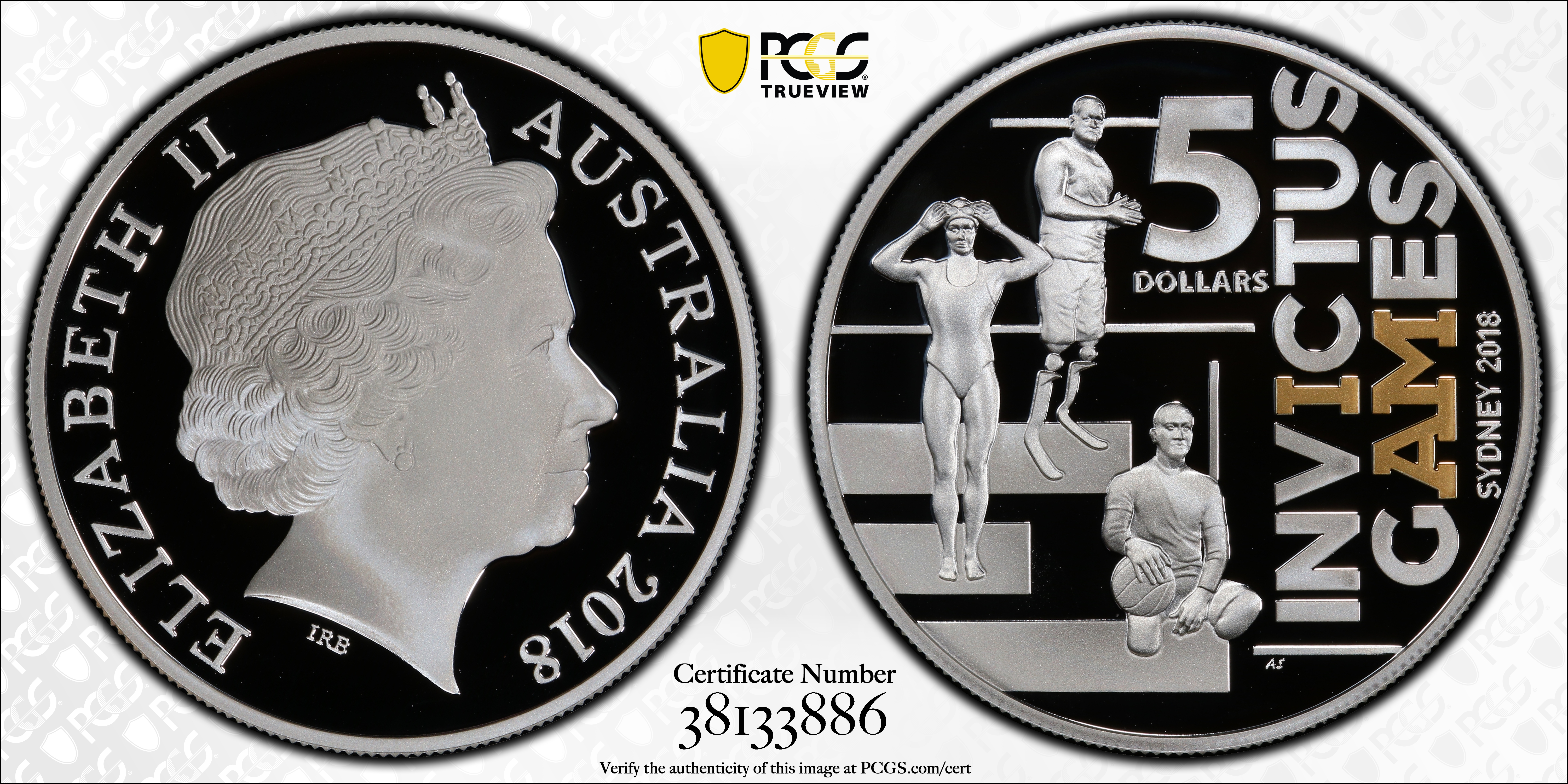 2018 $5 Invictus Games Gilt, DCAM PR70DCAM 认证号38133886, PCGS号803118