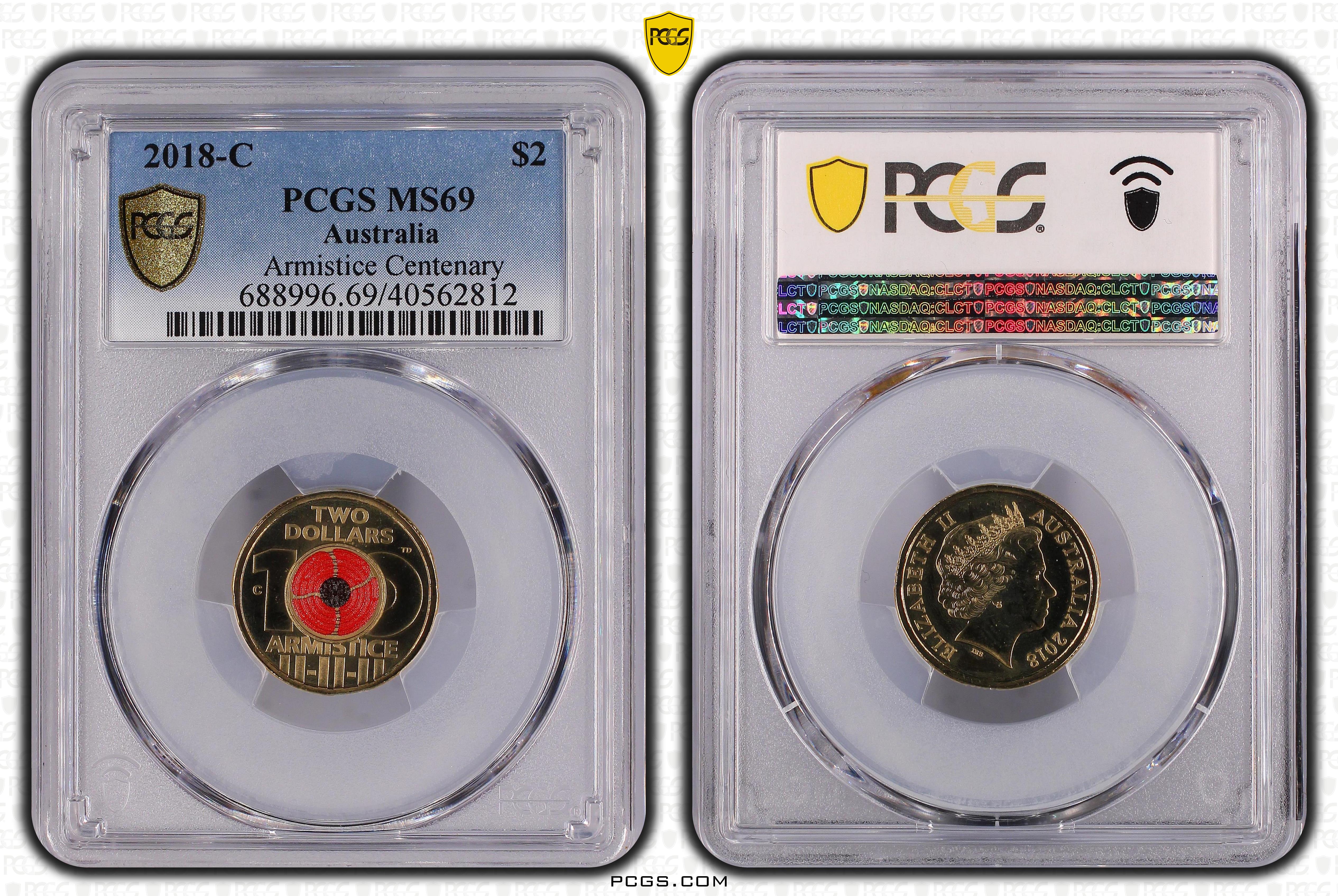 2018-C $2 Armistice Centenary Colorized MS69 认证号40562812, PCGS号688996