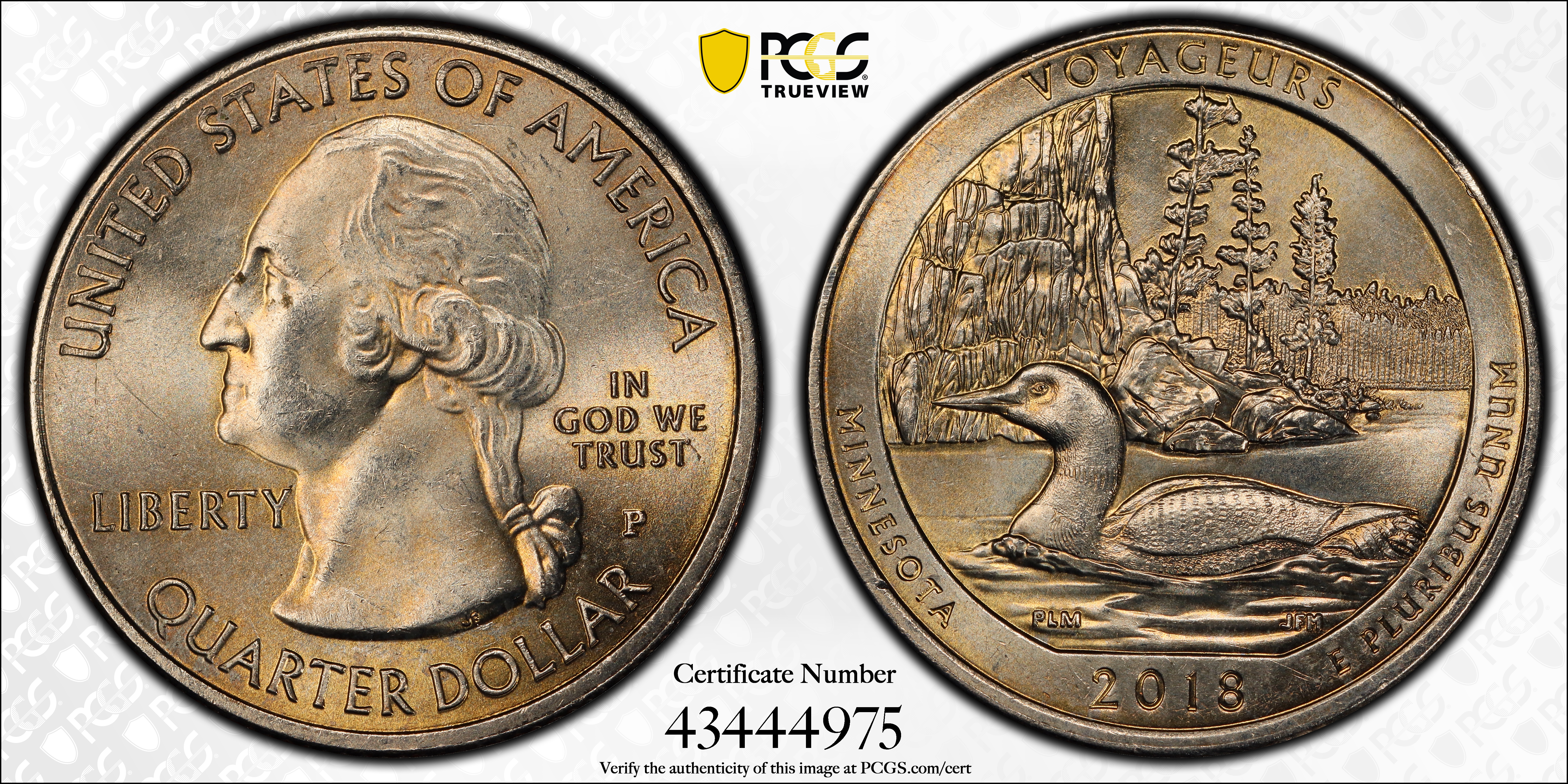 2018-P 25C Voyageurs NP MS64 认证号43444975, PCGS号669481