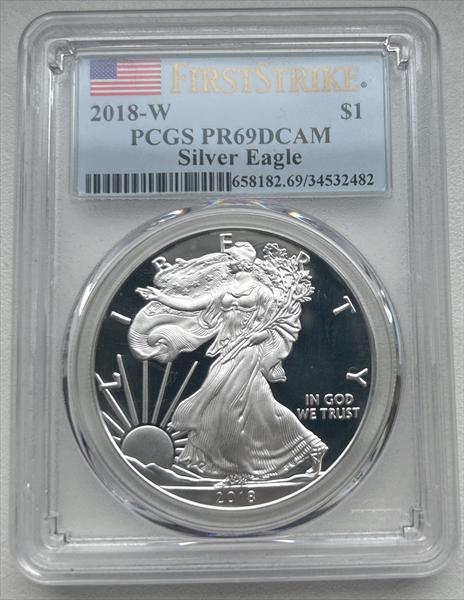 2018-W $1 Silver Eagle First Strike, DCAM PR69DCAM 认证号34532482, PCGS号658182