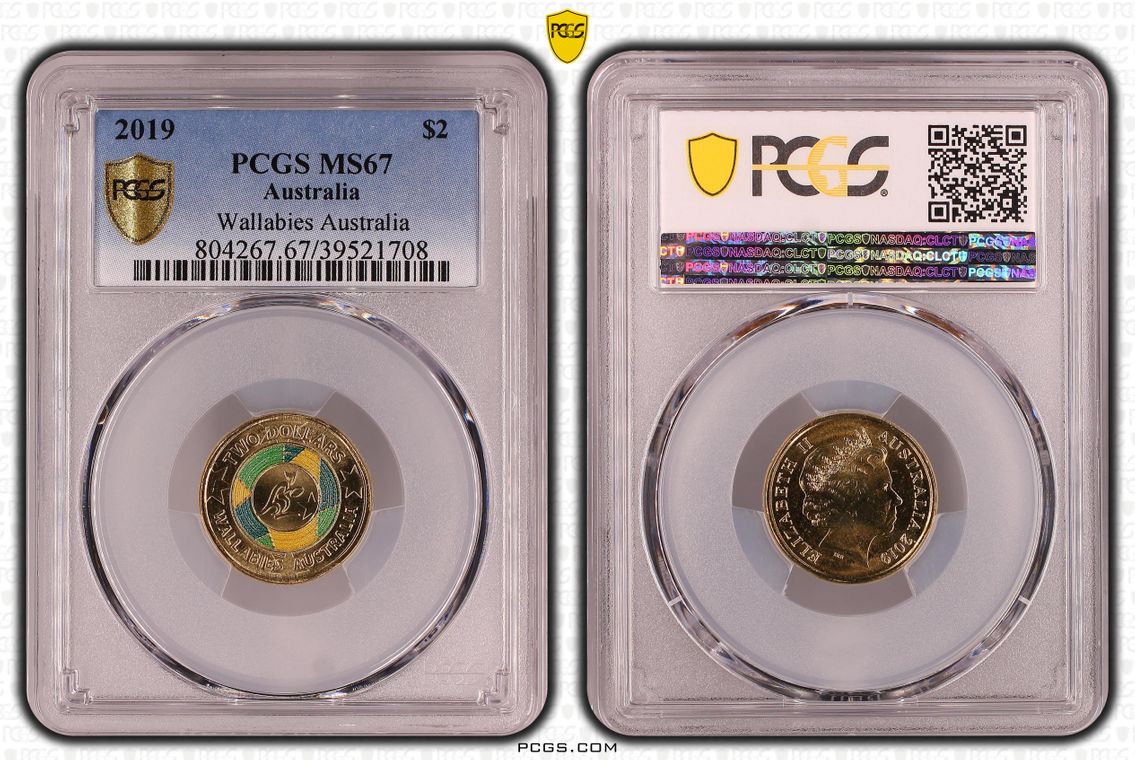 2019 $2 Wallabies Australia Colorized MS67 认证号39521708, PCGS号804267