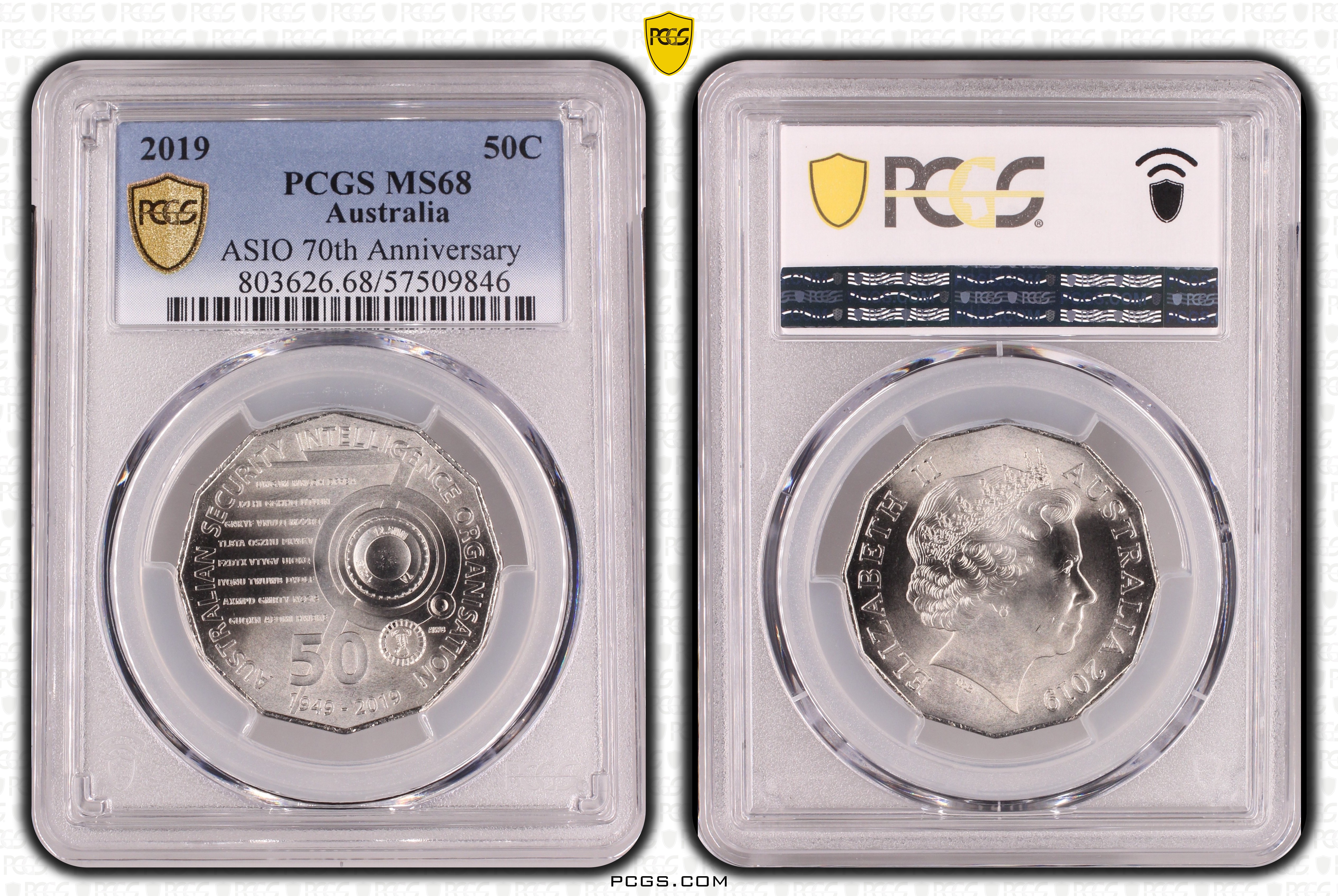 2019 50C ASIO 70th Anniversary MS68 认证号57509846, PCGS号803626