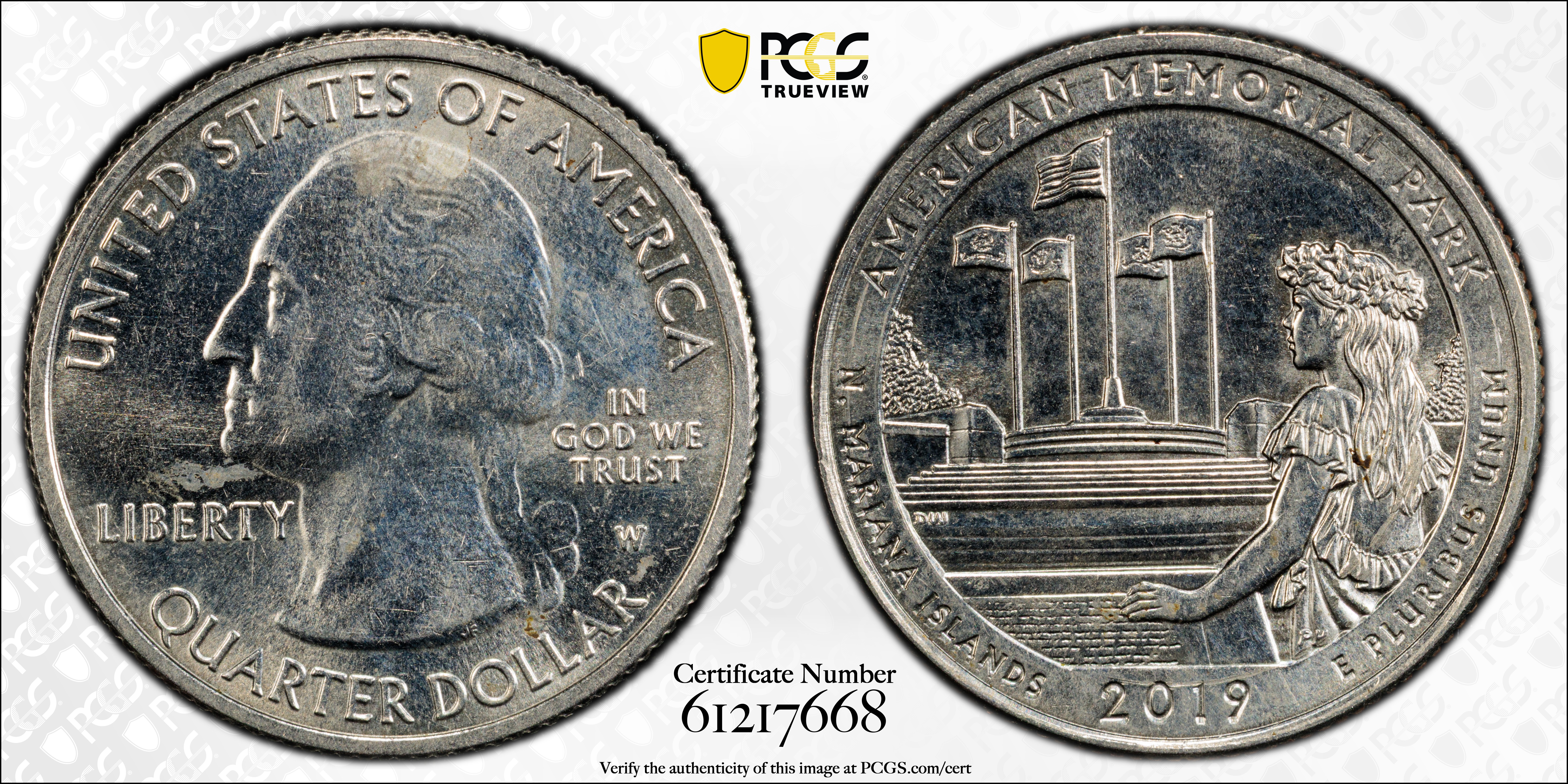 2019-W 25C American Memorial NP AU58 认证号61217668, PCGS号717990
