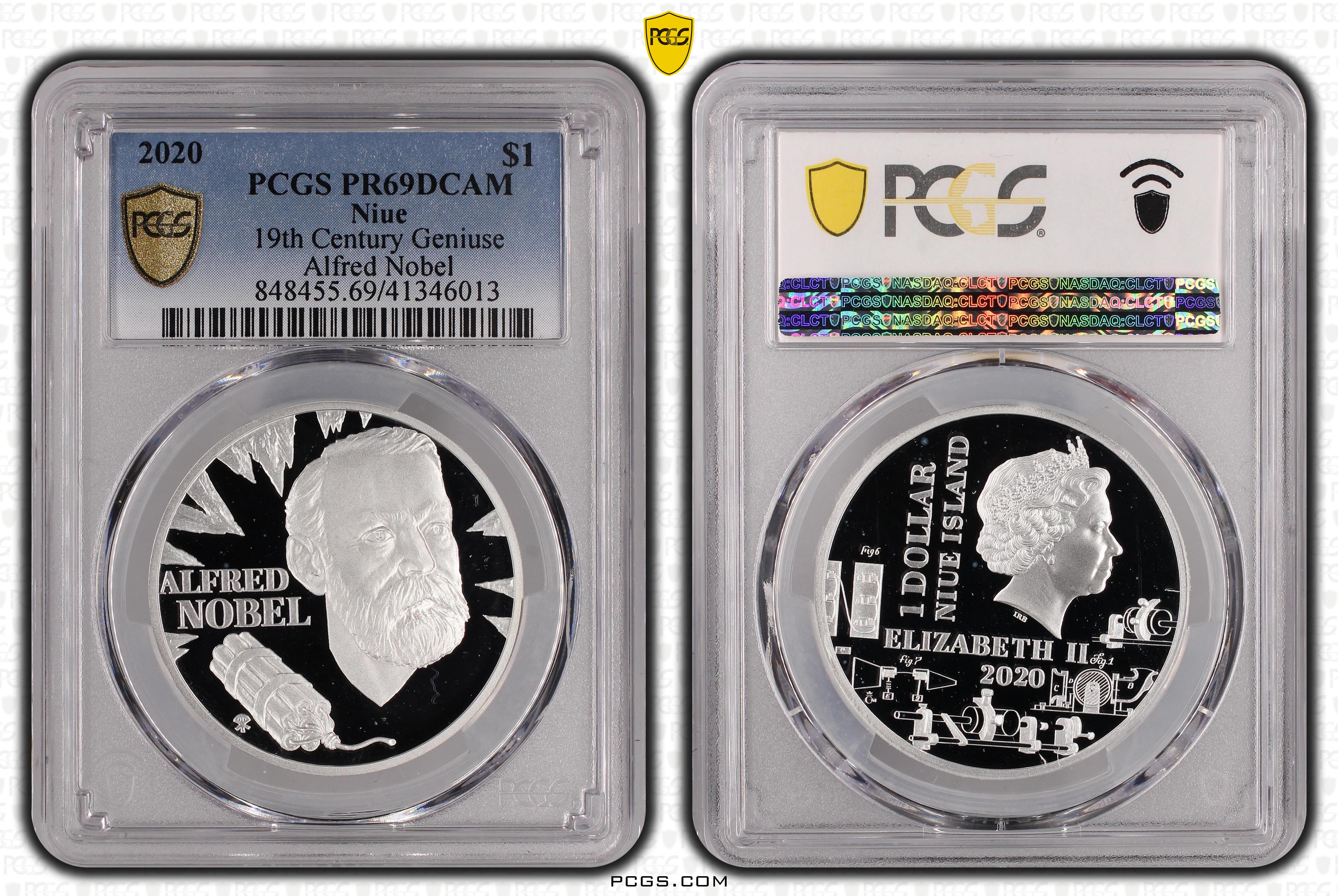 2020 $1 19th Century Geniuse Alfred Nobel, DCAM PR69DCAM 认证号41346013, PCGS号848455
