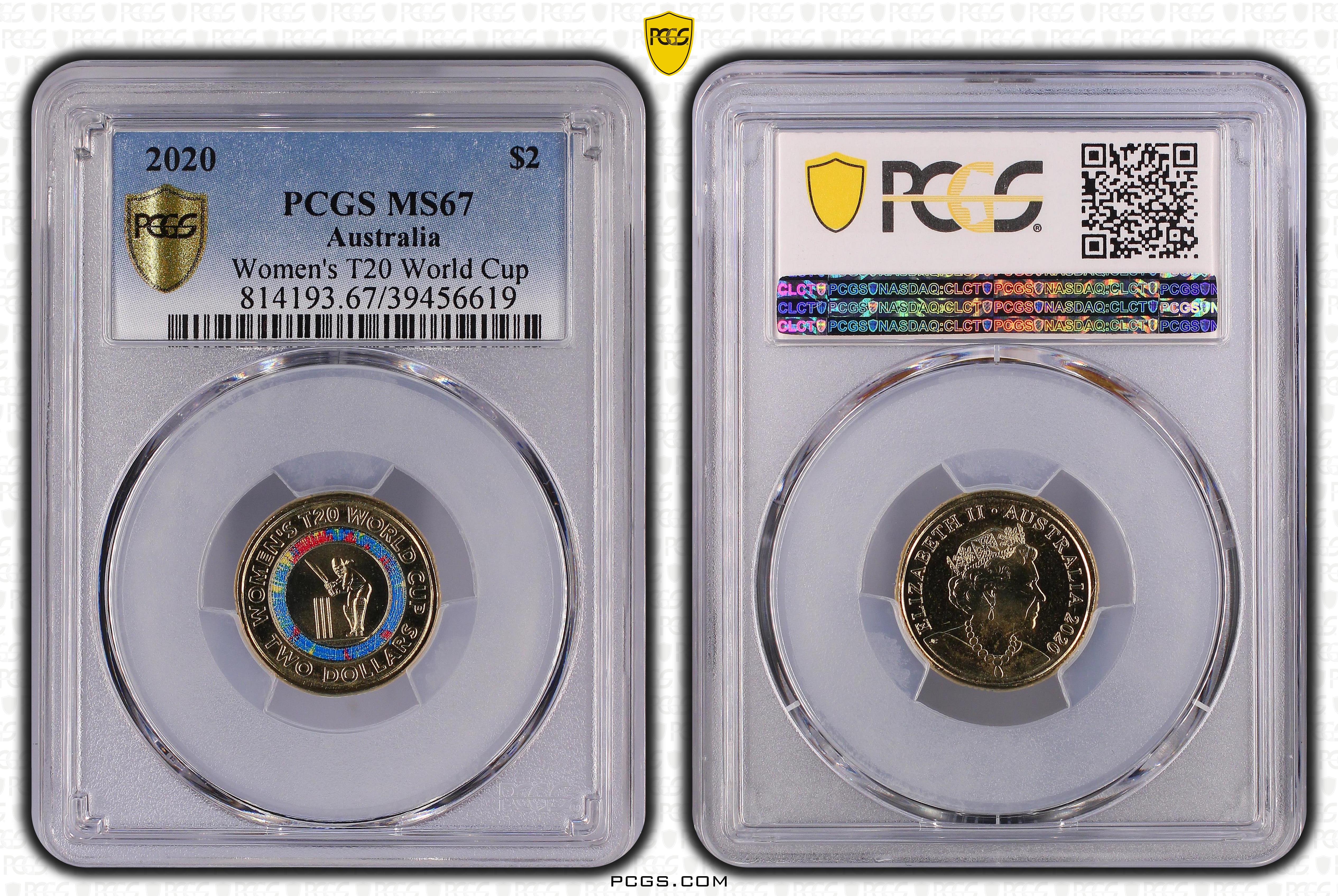 2020 $2 Women's T20 World Cup Colorized MS67 认证号39456619, PCGS号814193