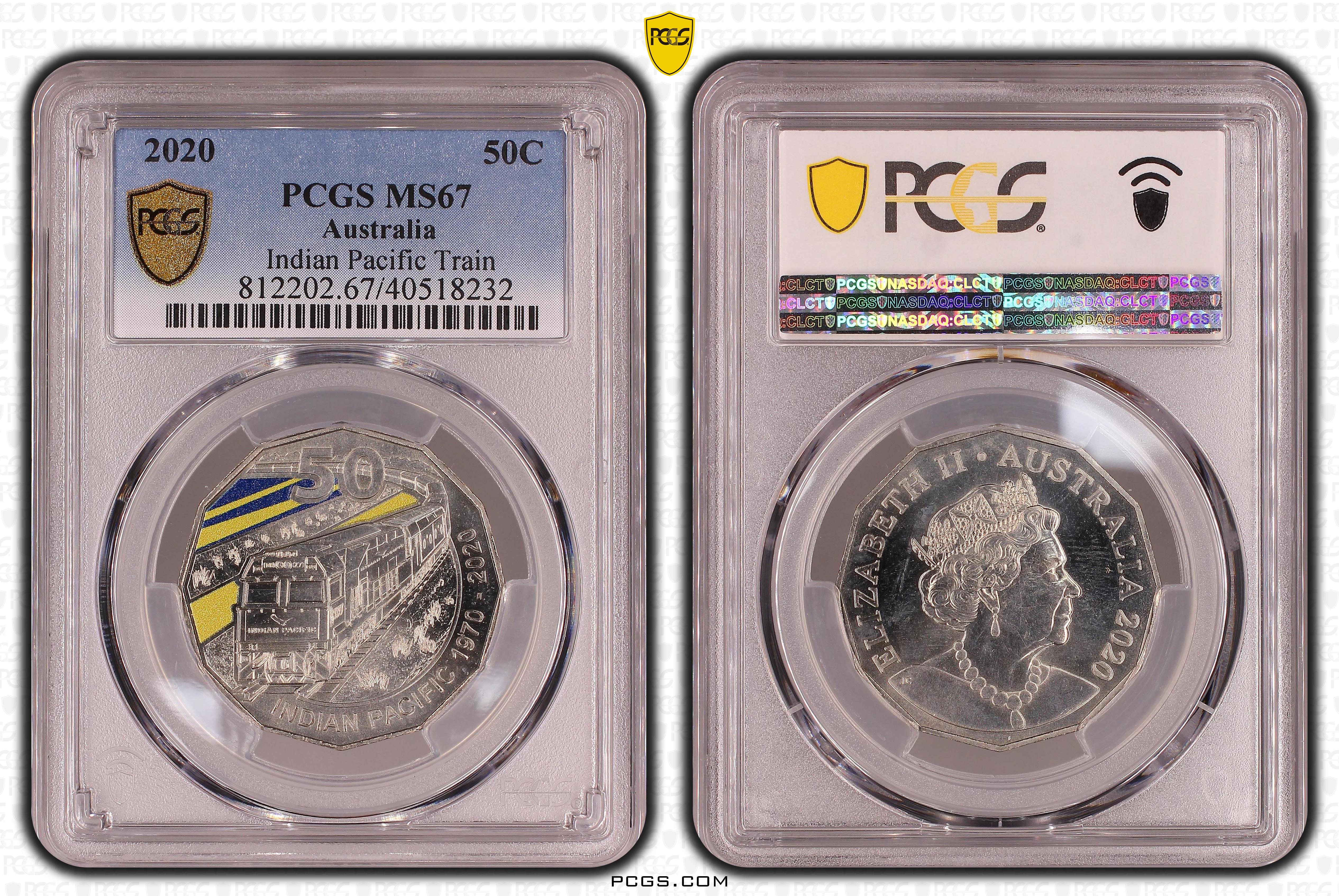 2020 50C Indian Pacific Train Colorized MS67 认证号40518232, PCGS号812202