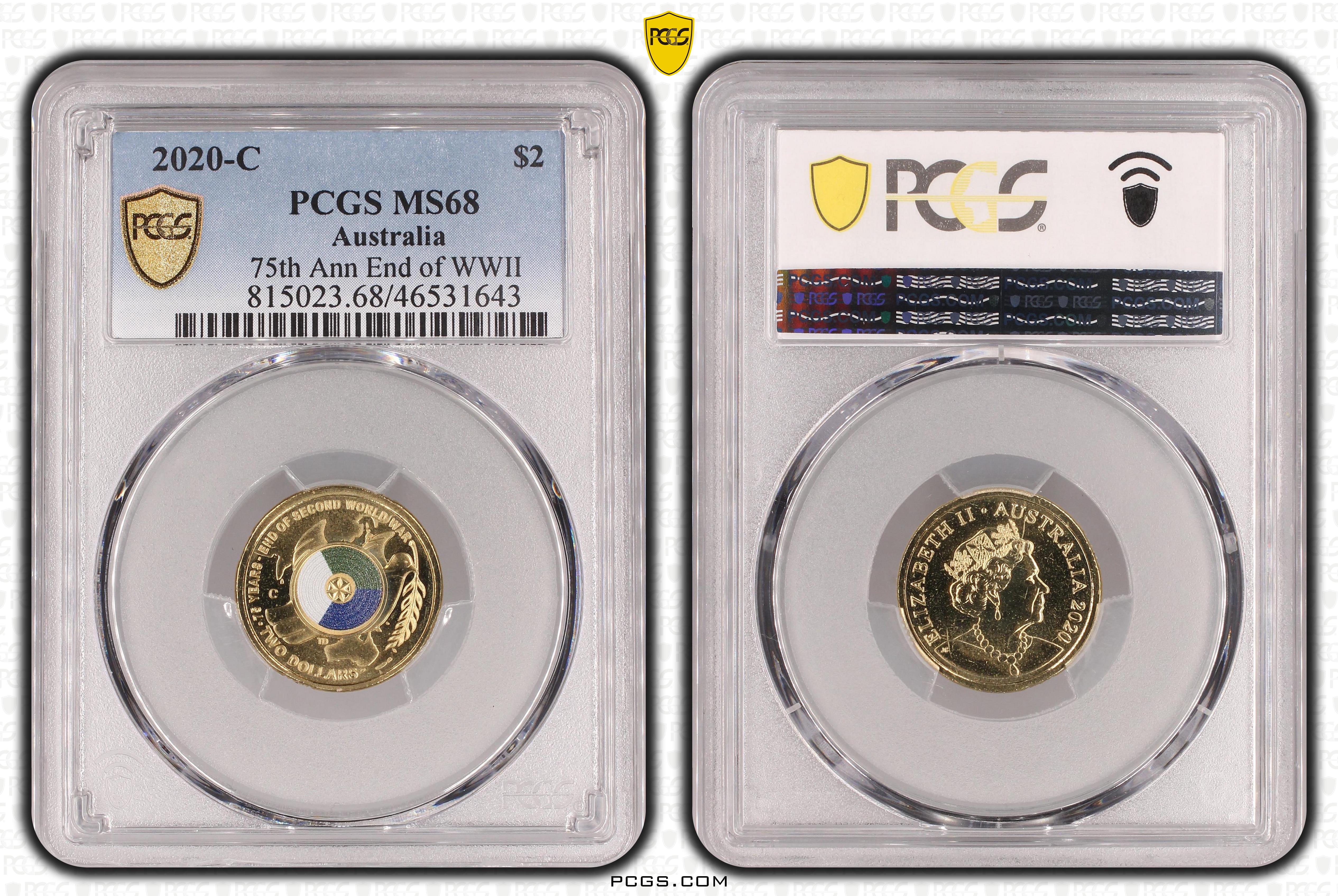 2020-C $2 75th Ann End of WWII Colorized MS68 认证号46531643, PCGS号815023