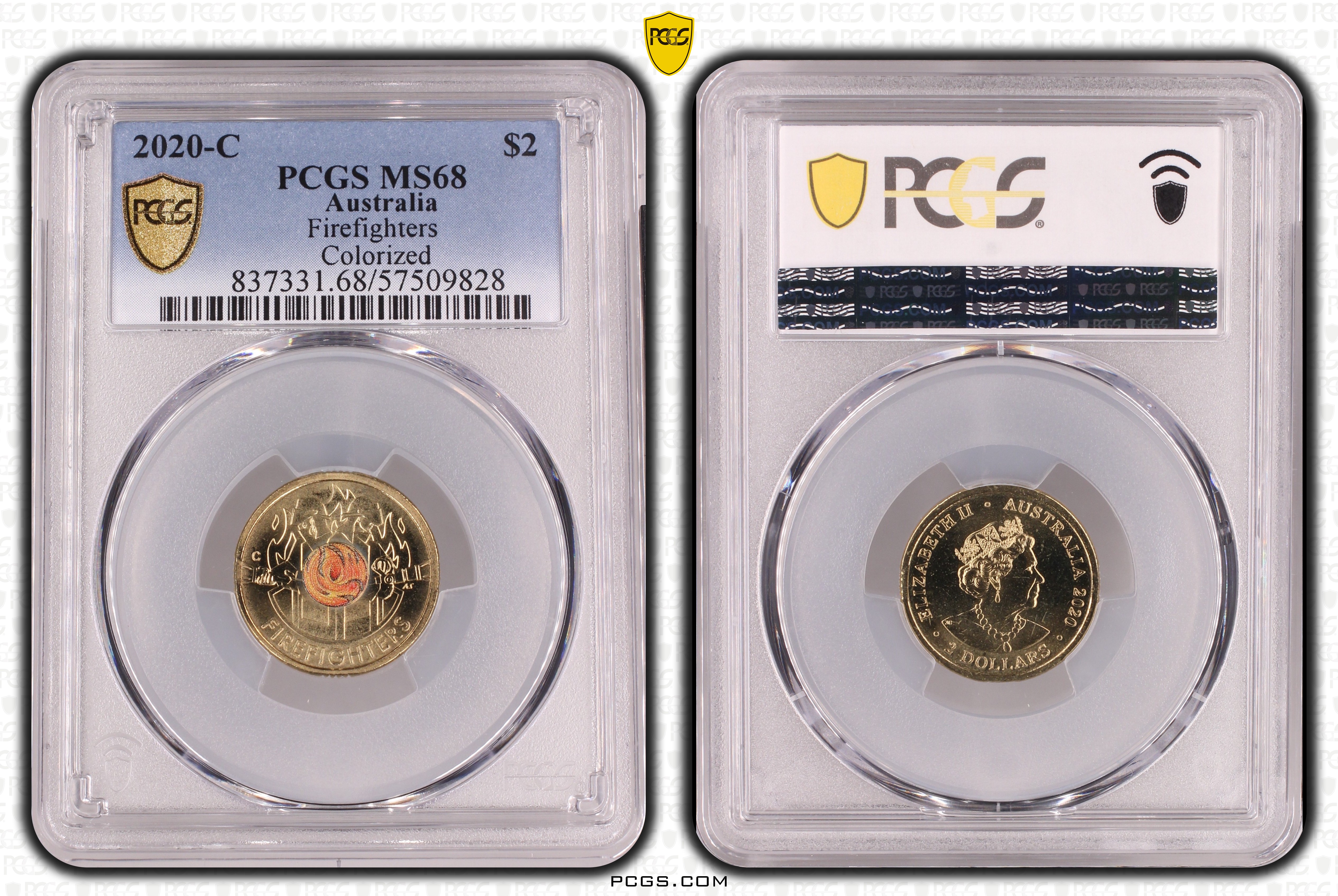 2020-C $2 Firefighters Colorized MS68 认证号57509828, PCGS号837331