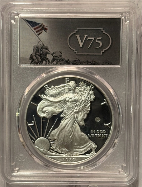 2020-W $1 Silver Eagle - v75 Privy First Day of Issue, DCAM PR70DCAM 认证号40694784, PCGS号819303