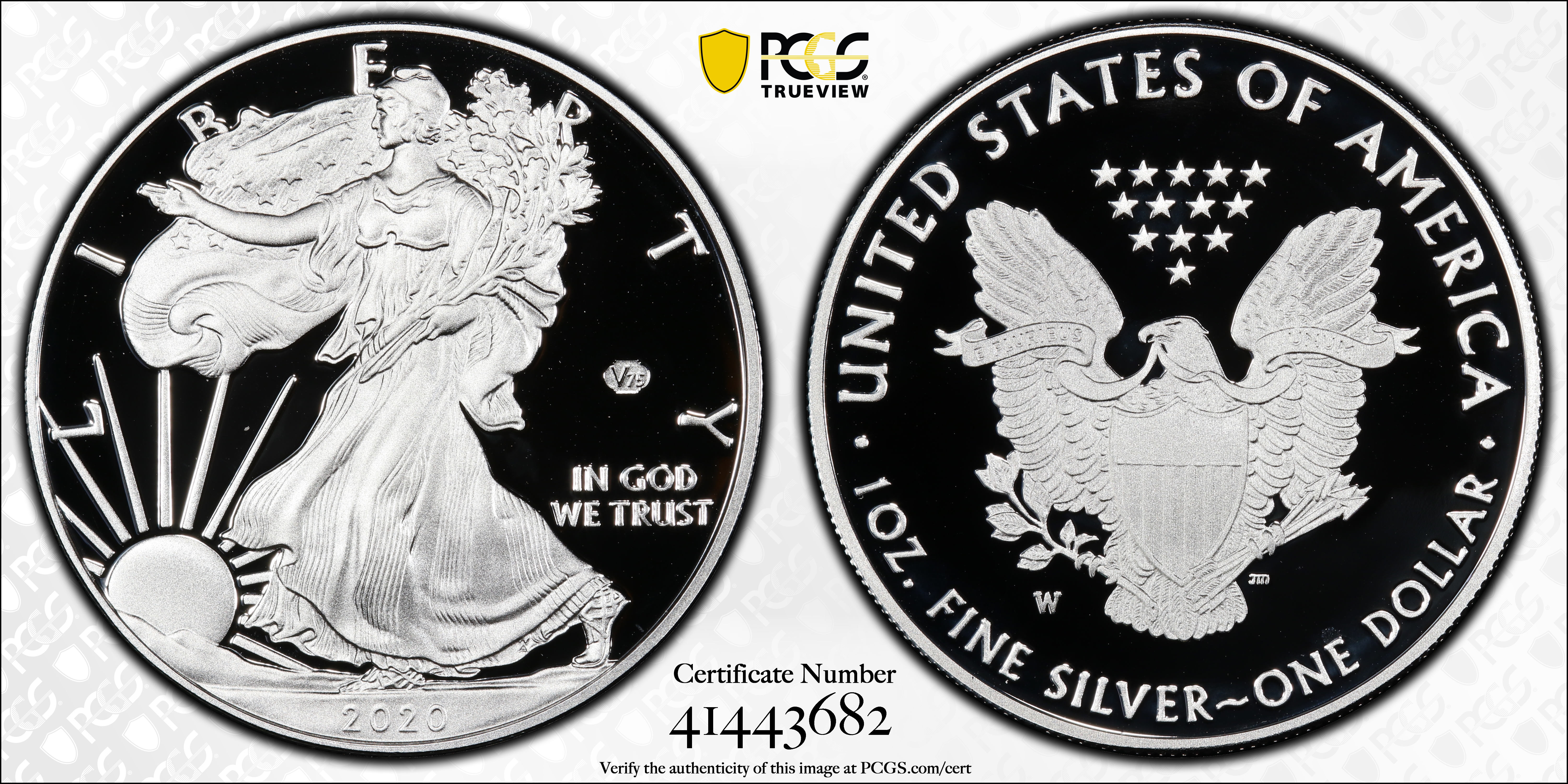 2020-W $1 Silver Eagle - v75 Privy, DCAM PR69DCAM 认证号41443682, PCGS号819301