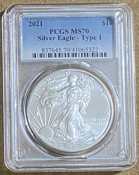 2021 $1 Silver Eagle - Type 1 MS70 认证号41065322, PCGS号837645