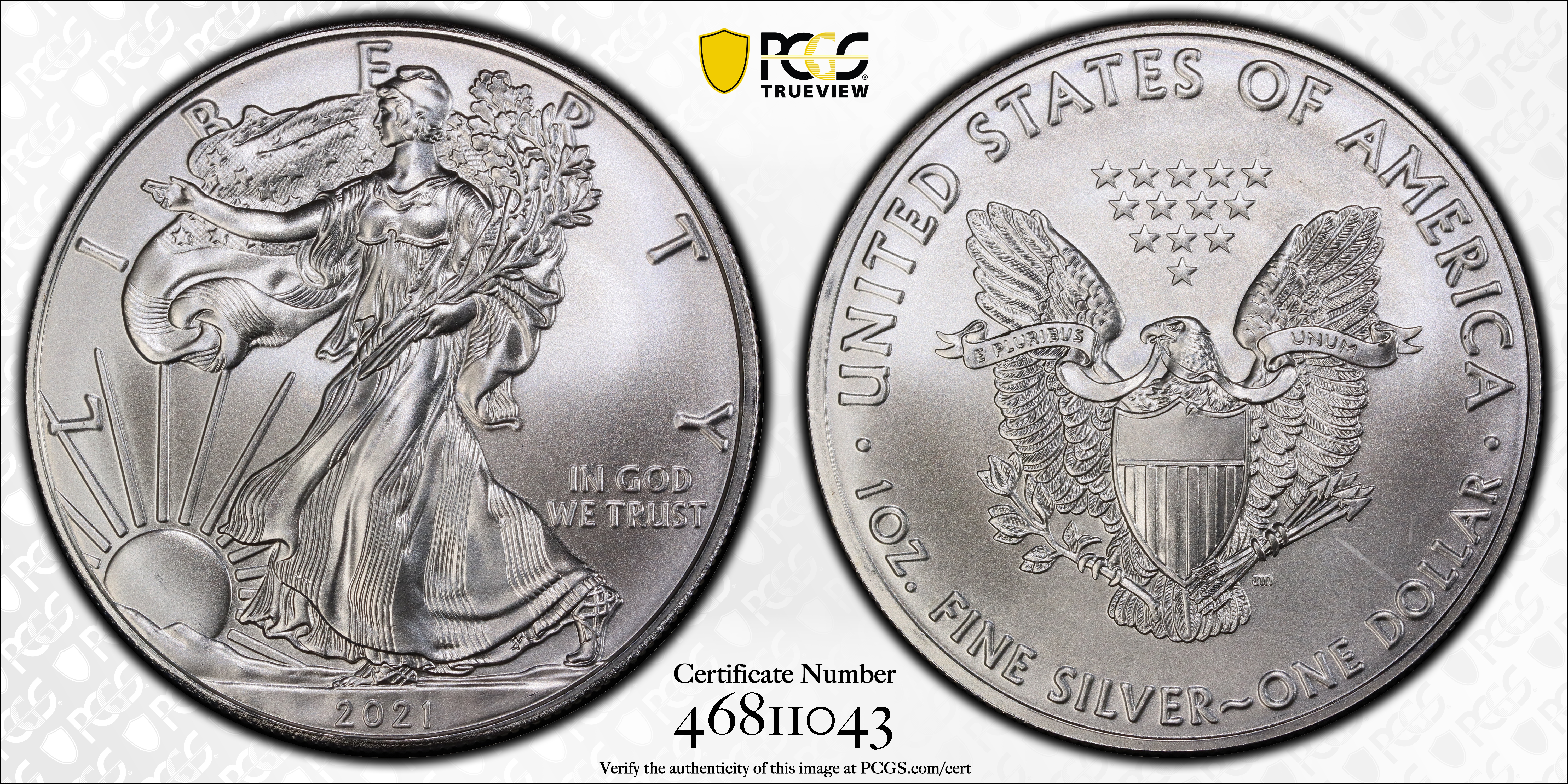 2021 $1 Silver Eagle - Type 1 MS69 认证号46811043, PCGS号837645