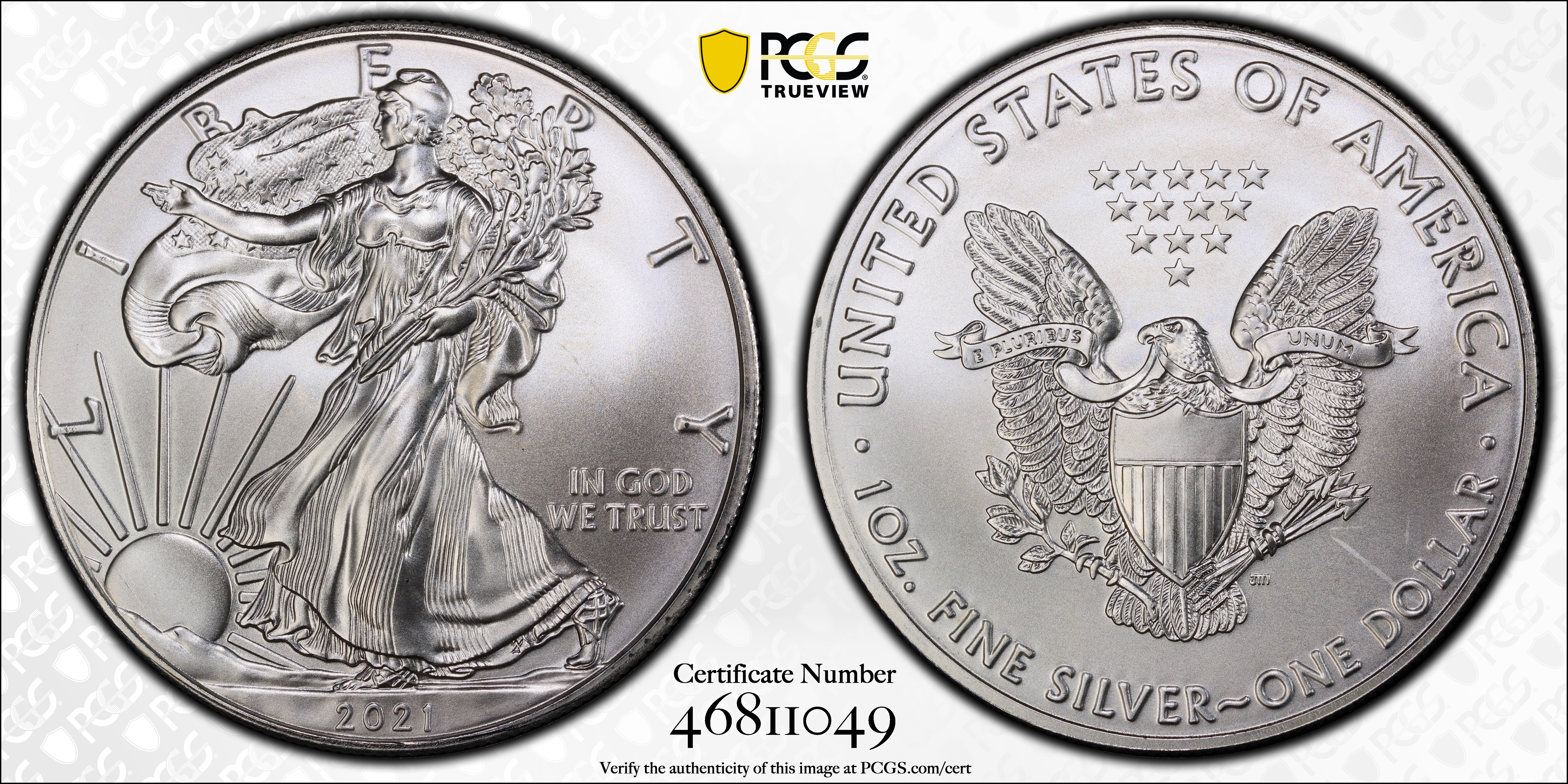 2021 $1 Silver Eagle - Type 1 MS68 认证号46811049, PCGS号837645