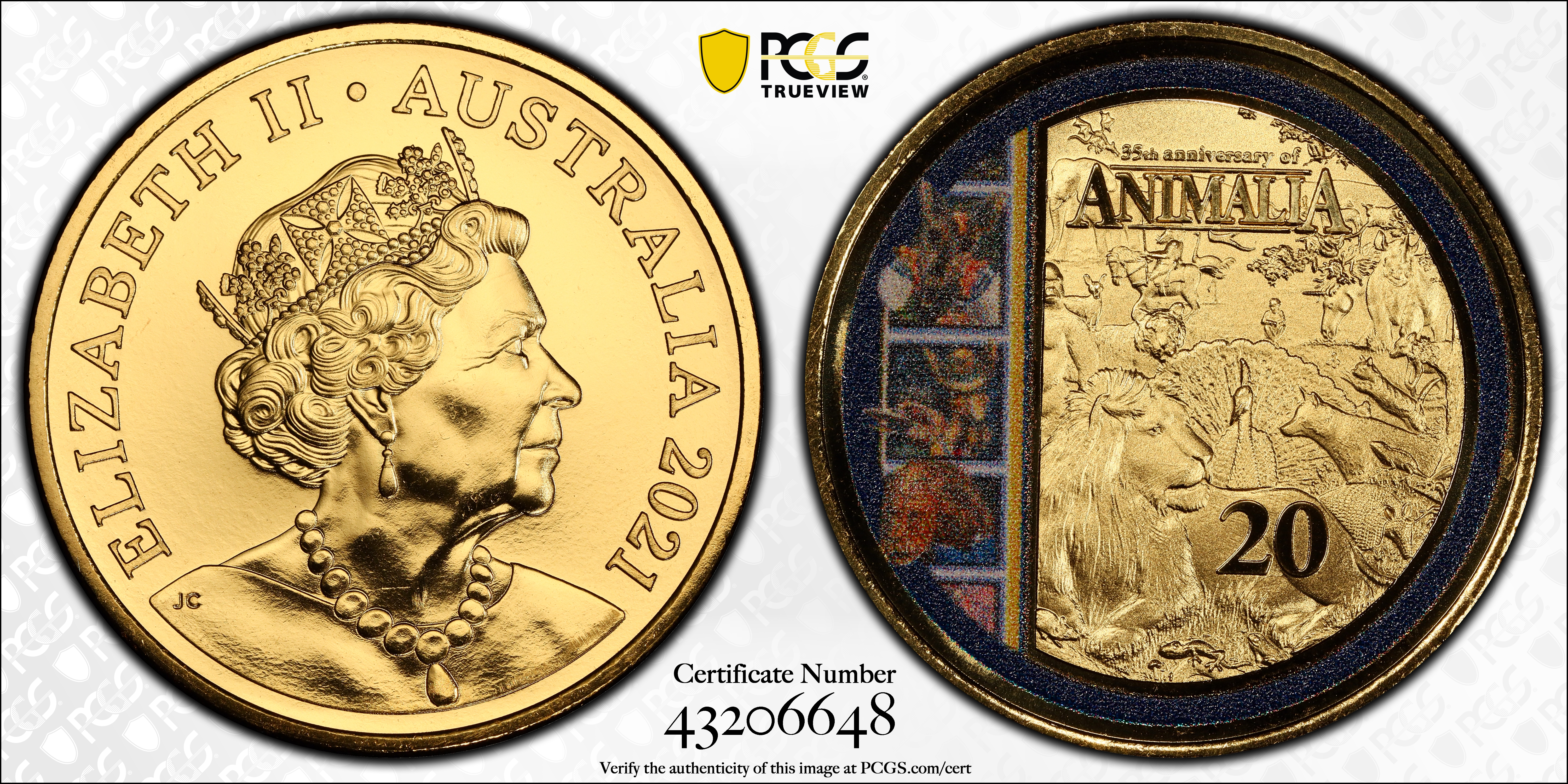 2021 20C Animalia 35th Ann. Gold Plated MS68 认证号43206648, PCGS号890666