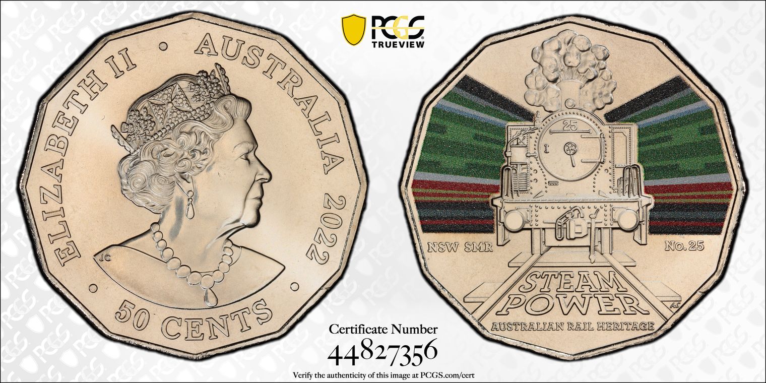 2022 50C NSW S. Maitland Rail No.25 Australian Rail Heritage MS69 认证号44827356, PCGS号899452
