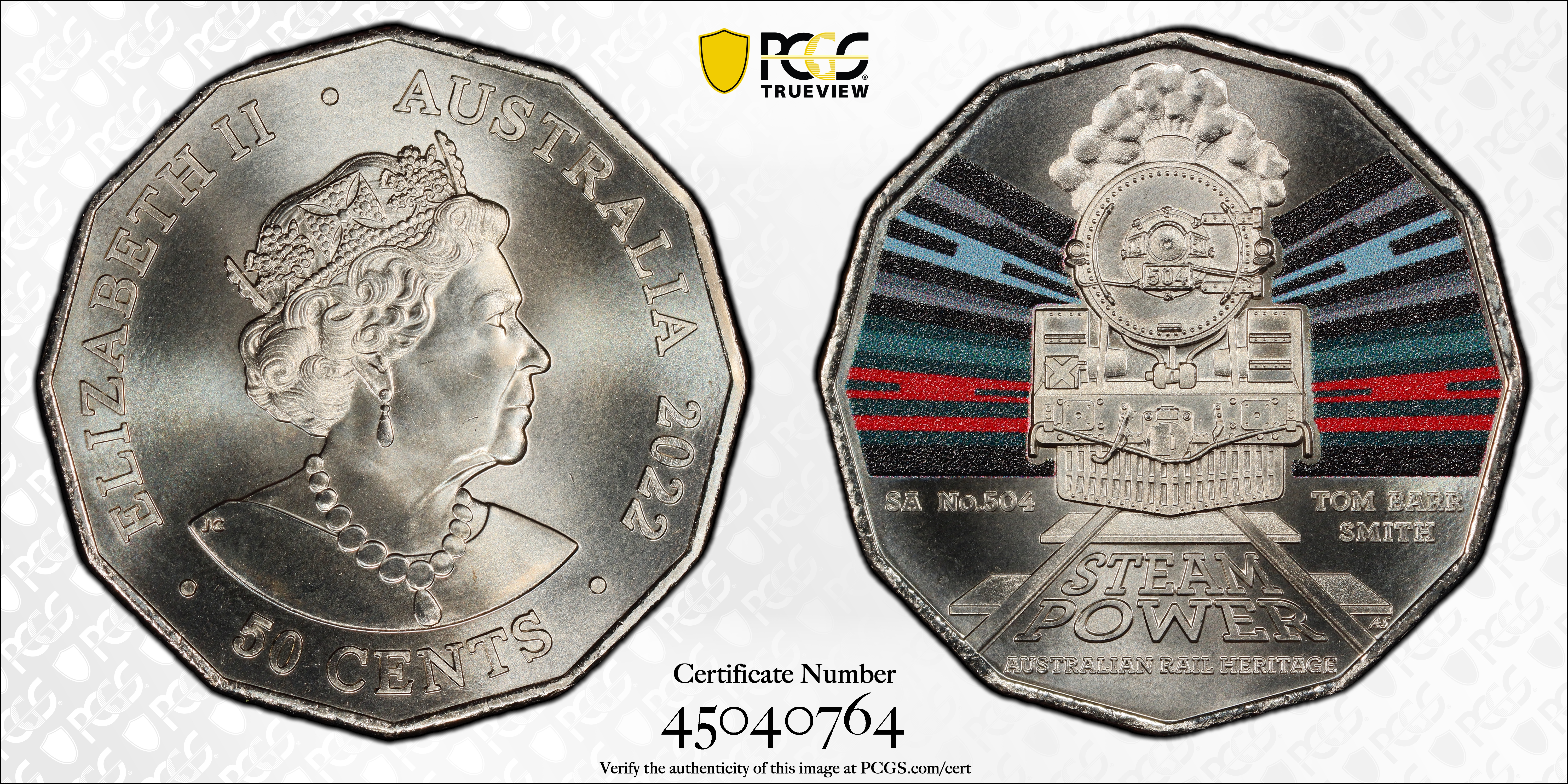 2022 50C SA Railways No. 504 Tom Barr Smith Colorized MS68 认证号45040764, PCGS号901505