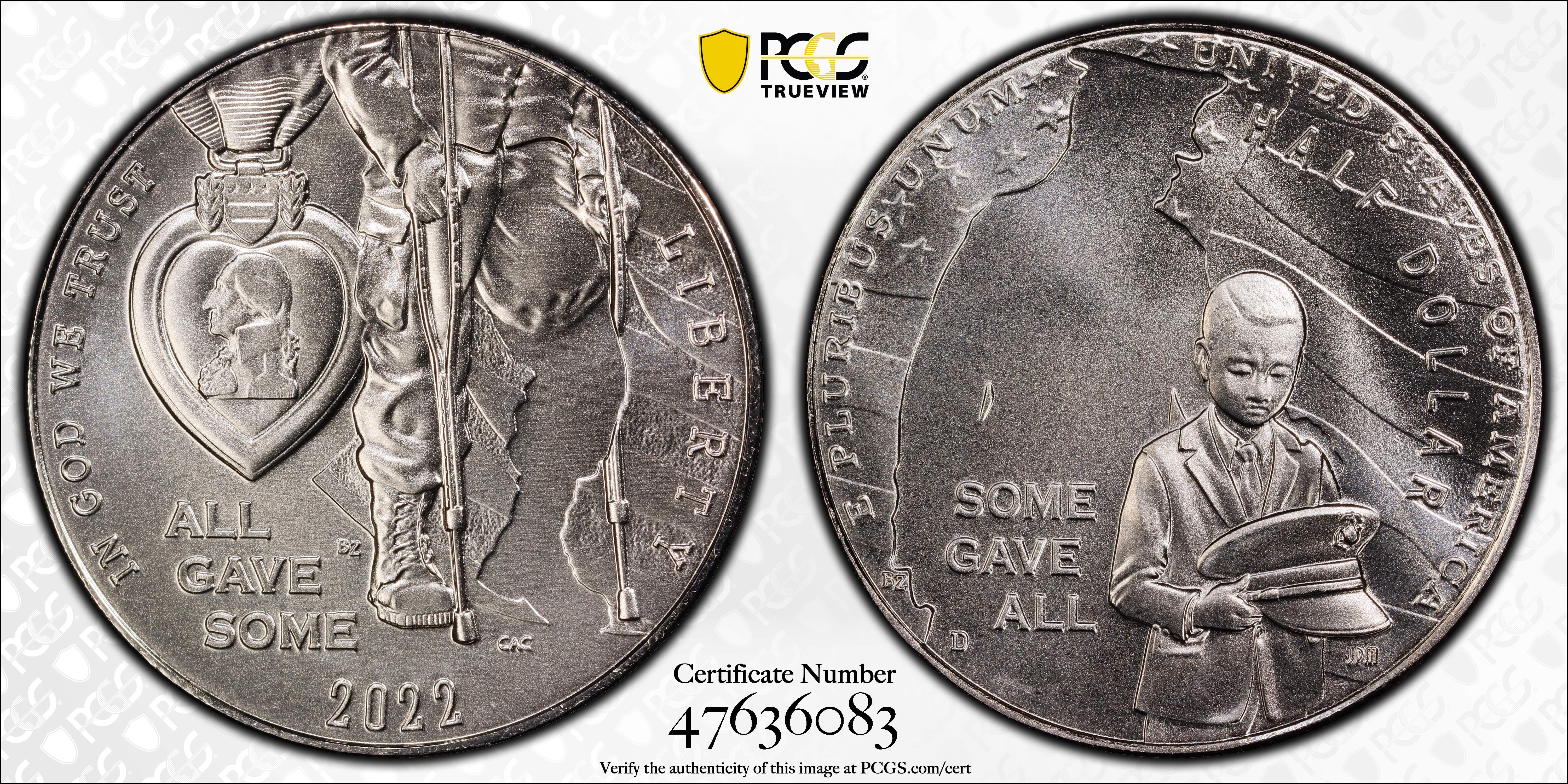 2022-D 50C National Purple Heart Hall of Honor MS70 认证号47636083, PCGS号906141